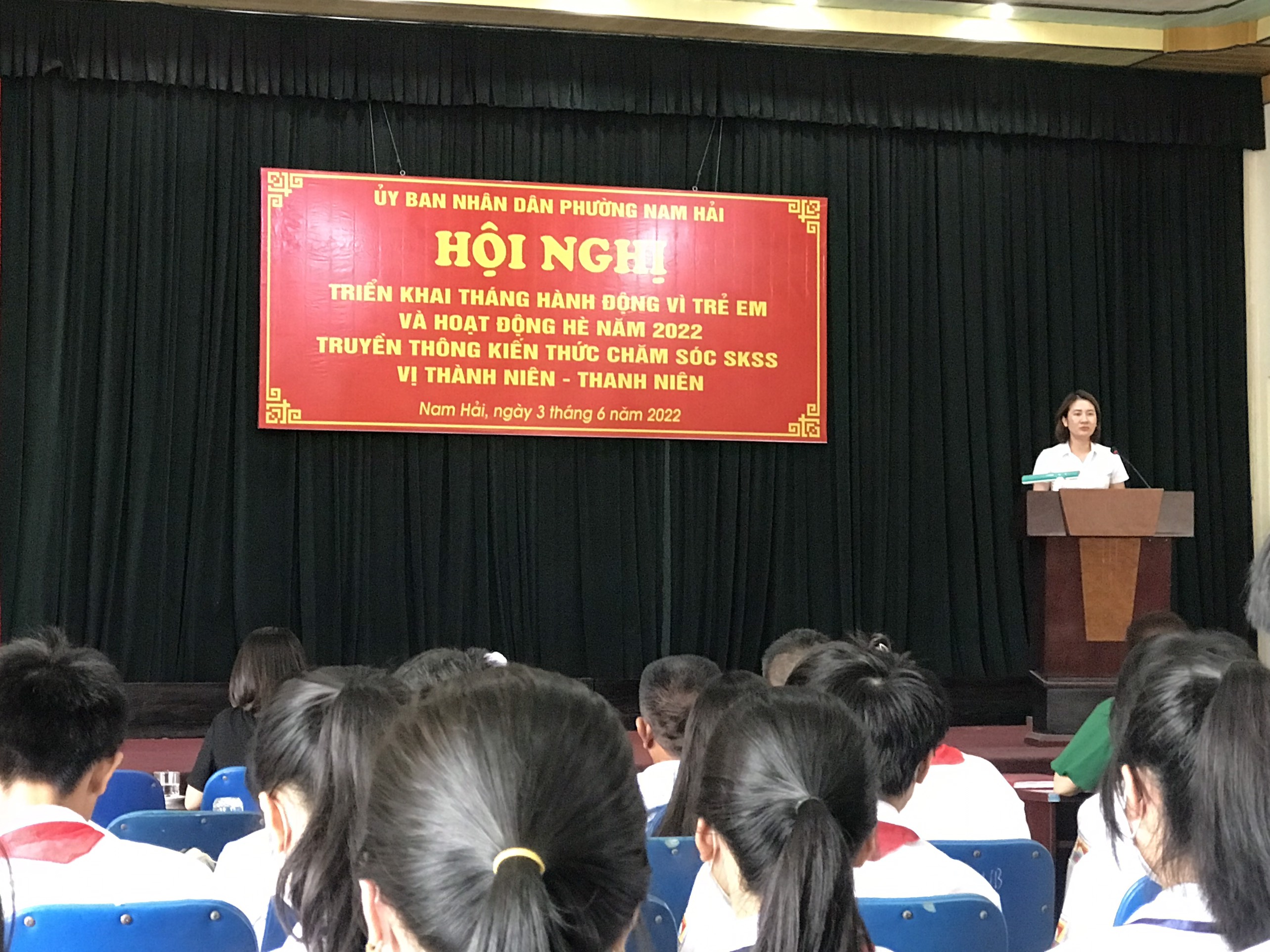Vào 8h00 ngày 03/6/2022 Ủy ban nhân dân phường Nam Hải tổ chức phát động Tháng hành động Vì trẻ em và hoạt động hè năm 2022, truyền thông lồng ghép về chăm sóc sức khỏe sinh sản vị thành niên