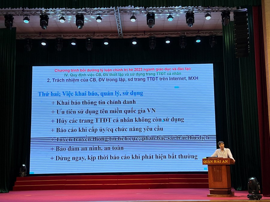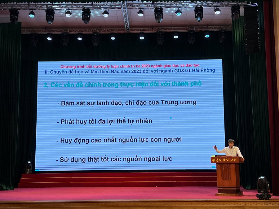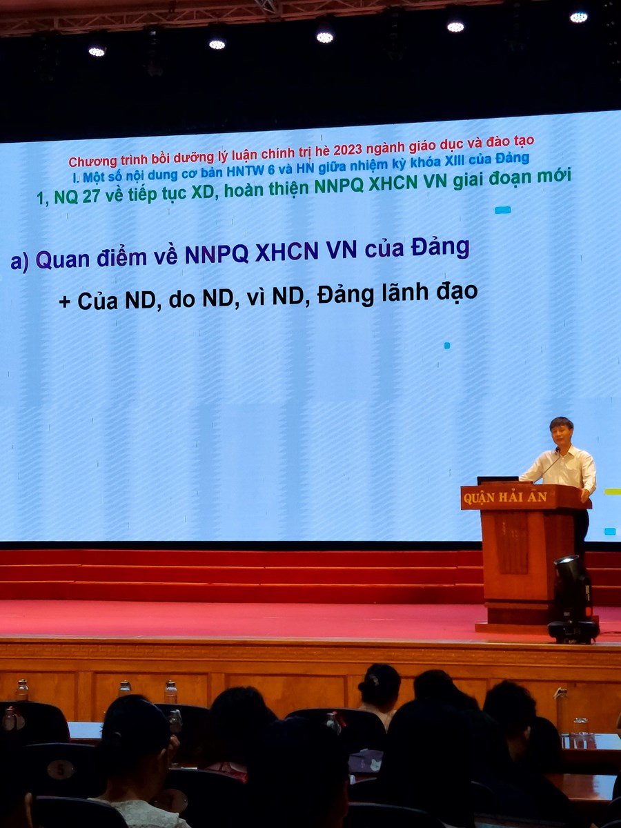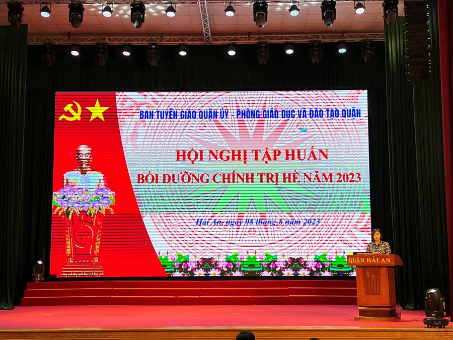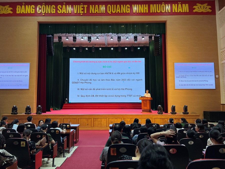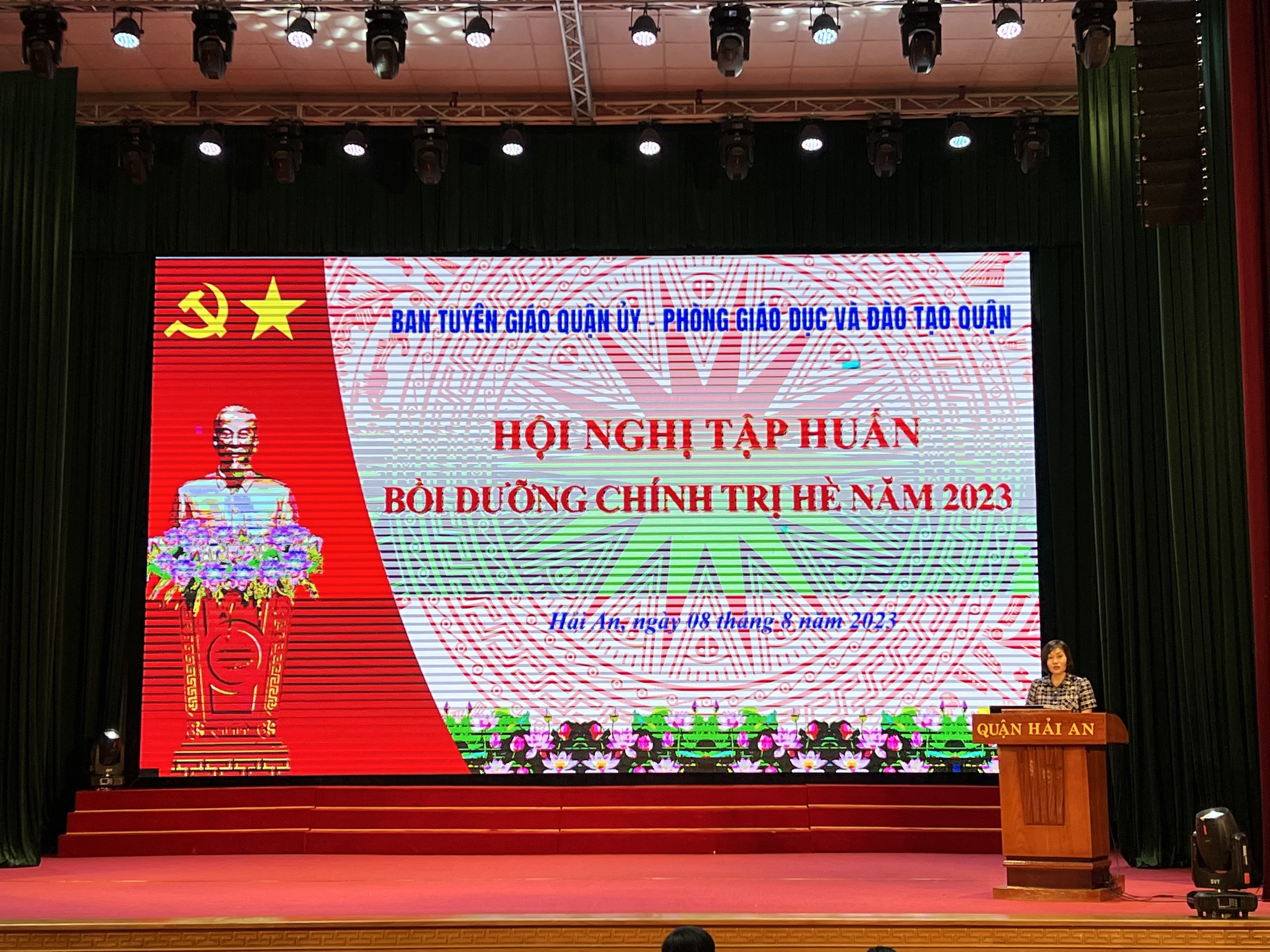 Thực hiện Công văn số 22-KH/BTGQU-PGD&ĐT, ngày 18/7/2023 của Ban Tuyên giáo Quận ủy và Phòng Giáo dục và Đào tạo về việc bồi dưỡng chính trị hè cho đội ngũ cán bộ, giáo viên các trường Trung học cơ sở thuộc quận Hải An năm 2023. Sáng ngày 08/8/2023, cán bộ, giáo viên, nhân viên trường THCS Nam Hải tham gia học tập với tinh thần nâng cao nhận thức chính trị, tư tưởng, ý thức trách nhiệm, năng lực thực hiện nhiệm vụ đáp ứng yêu cầu đổi mới giáo dục theo Chương trình phổ thông 2018.