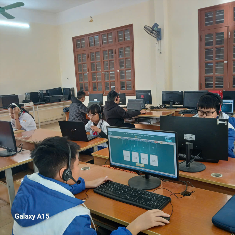 Trường THCS Nam Hải có 47 em học sinh tham gia thi ở 4 khối 6, 7, 8, 9. Các em tham gia thi trực tuyến trên hệ thống IOE với 200 câu hỏi trắc nghiệm khách quan, tập trung vào các kỹ năng Nghe, Đọc, Viết và Từ vựng - Ngữ pháp trong vòng 30 phút.