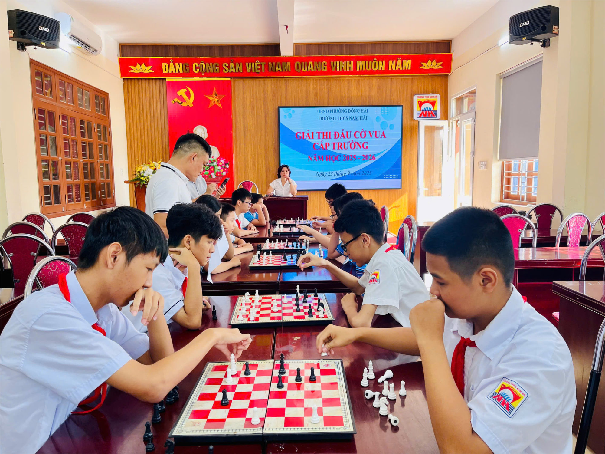 Nhằm tuyển chọn vận động viên, phát hiện tài năng trẻ và tạo sân chơi thể thao cho học sinh, ngày 23/9/2025 trường THCS Nam Hải đã tổ chức Giải cờ vua cấp trường năm học 2025-2026 Cuộc thi đã thu hút đông đảo các bạn học sinh các khối lớp tham dự tạo nên một hành trình học hỏi đầy trí tuệ và thử thách.