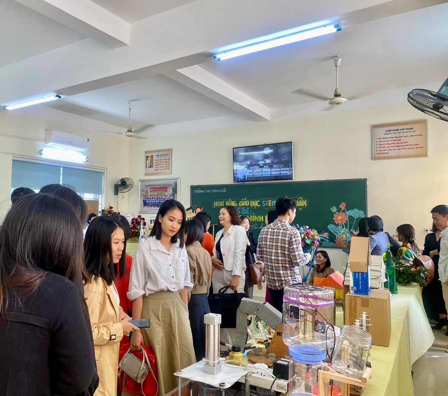 Chuyên đề giáo dục Stem môn môn Toán 8 cấp quận “Tạo hình khối” trường THCS Nam Hải đã thể hiện giúp học sinh sử dụng các kiến thức về các hình khối không gian và ứng dụng trong đời sống và sản xuất. Hình thành và phát triển các kiến thức và kĩ năng thuộc các lĩnh vực Toán học, khoa học, công nghệ, kĩ thuật thông qua việc vận dụng và phối hợp để giải quyết các vấn đề thực tiễn được đặt ra. Chuyên đề diễn ra thành công và được Phòng Giáo dục và Đào tạo quận Hải An, các đồng chí giáo viên trường bạn đánh giá, xếp loại xuất sắc.