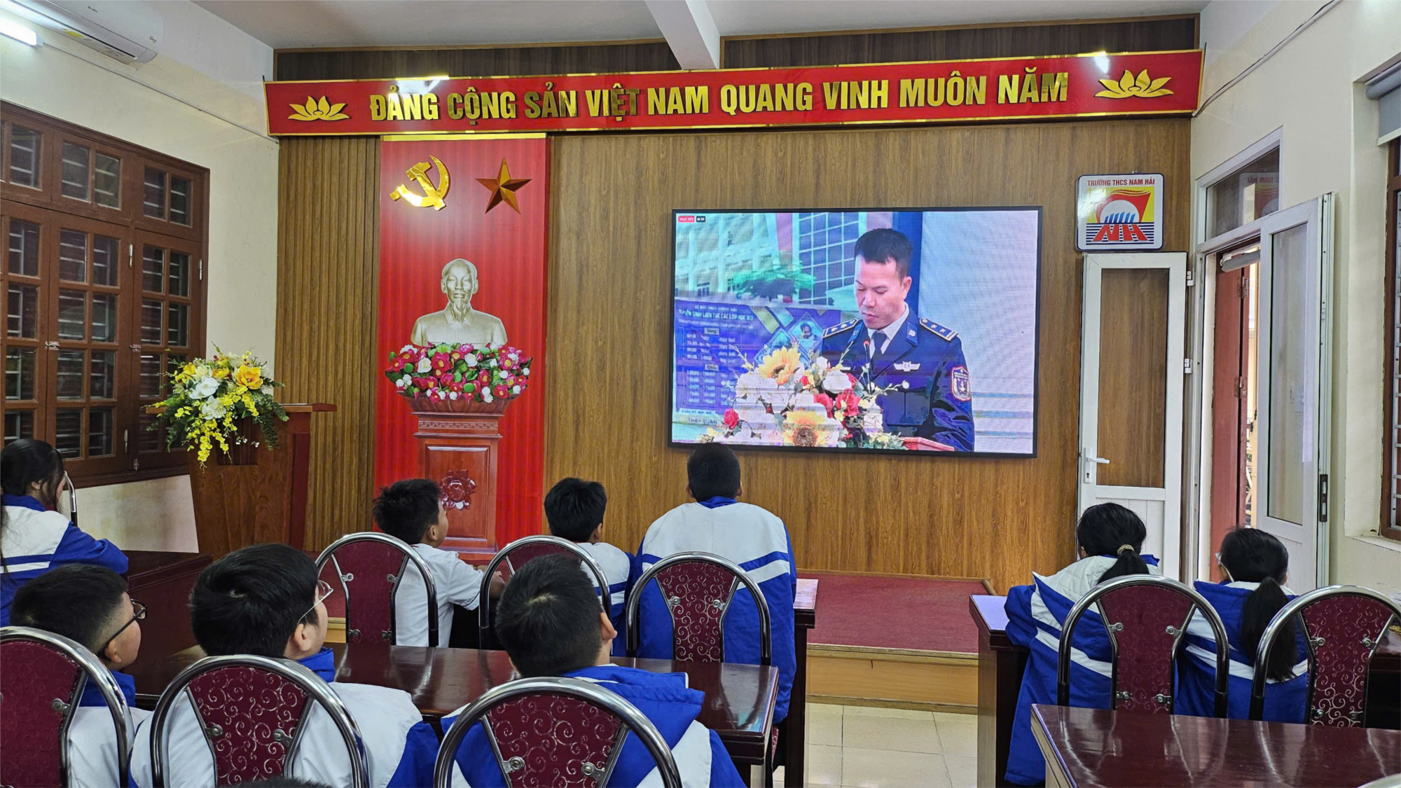 Sáng thứ 2 ngày 01/12/2025, học sinh Trường THCS Nam Hải đã tham gia theo dõi Lễ phát động Cuộc thi trực tuyến “Em yêu biển, đảo quê hương” do Sở Giáo dục & Đào tạo Hải Phòng phối hợp với Bộ Tư lệnh Vùng Cảnh sát biển 1 tổ chức.