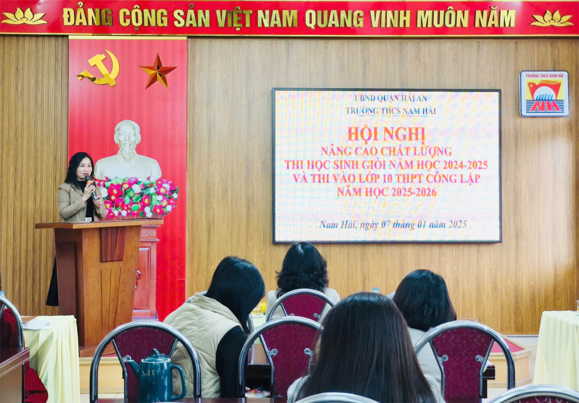 Ngày 07/01/2025 trường THCS Nam Hải vui mừng chào đón các đồng chí lãnh đạo, chuyên viên phòng GDĐT quận Hải An, lãnh đạo Đảng ủy - HĐND - UBND phường Nam Hải về dự Hội nghị nâng cao chất lượng học sinh giỏi thành phố năm học 2024-2025 và chất lượng ôn thi vào 10 THPT năm học 2025-2026.