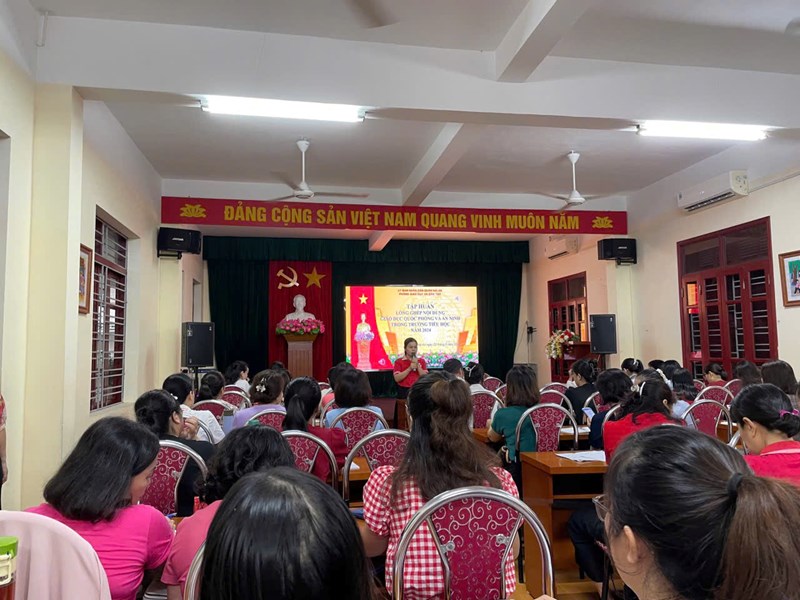 Ngày 23/8/2024, Phòng GD&ĐT tổ chức tổ chức tập huấn cho cán bộ, giáo viên dạy học lồng ghép nội dung Giáo dục quốc phòng và An ninh trong trường Tiểu học, THCS.