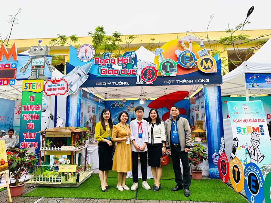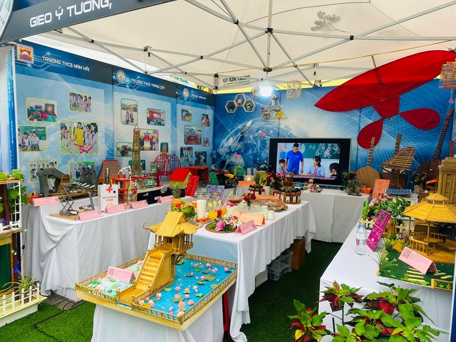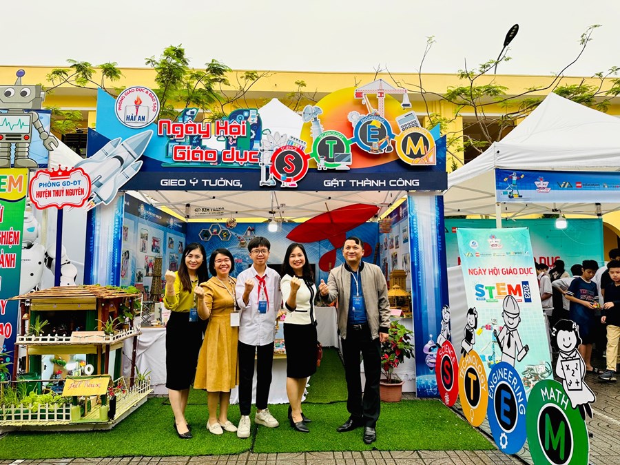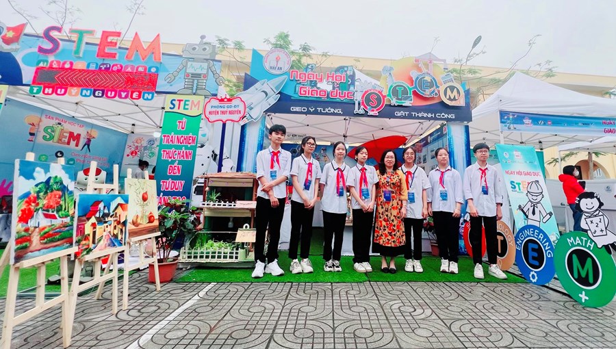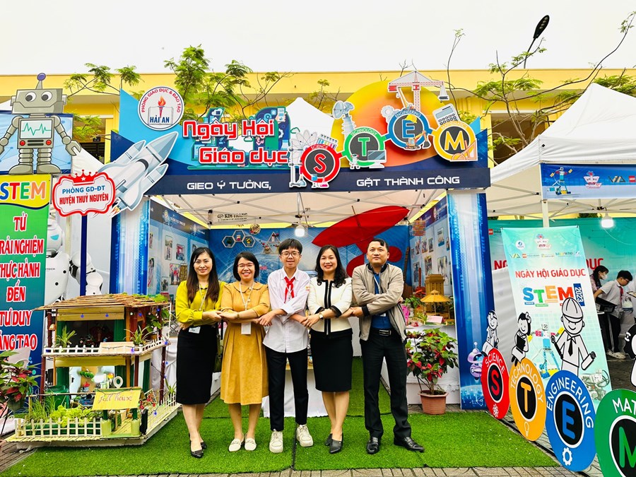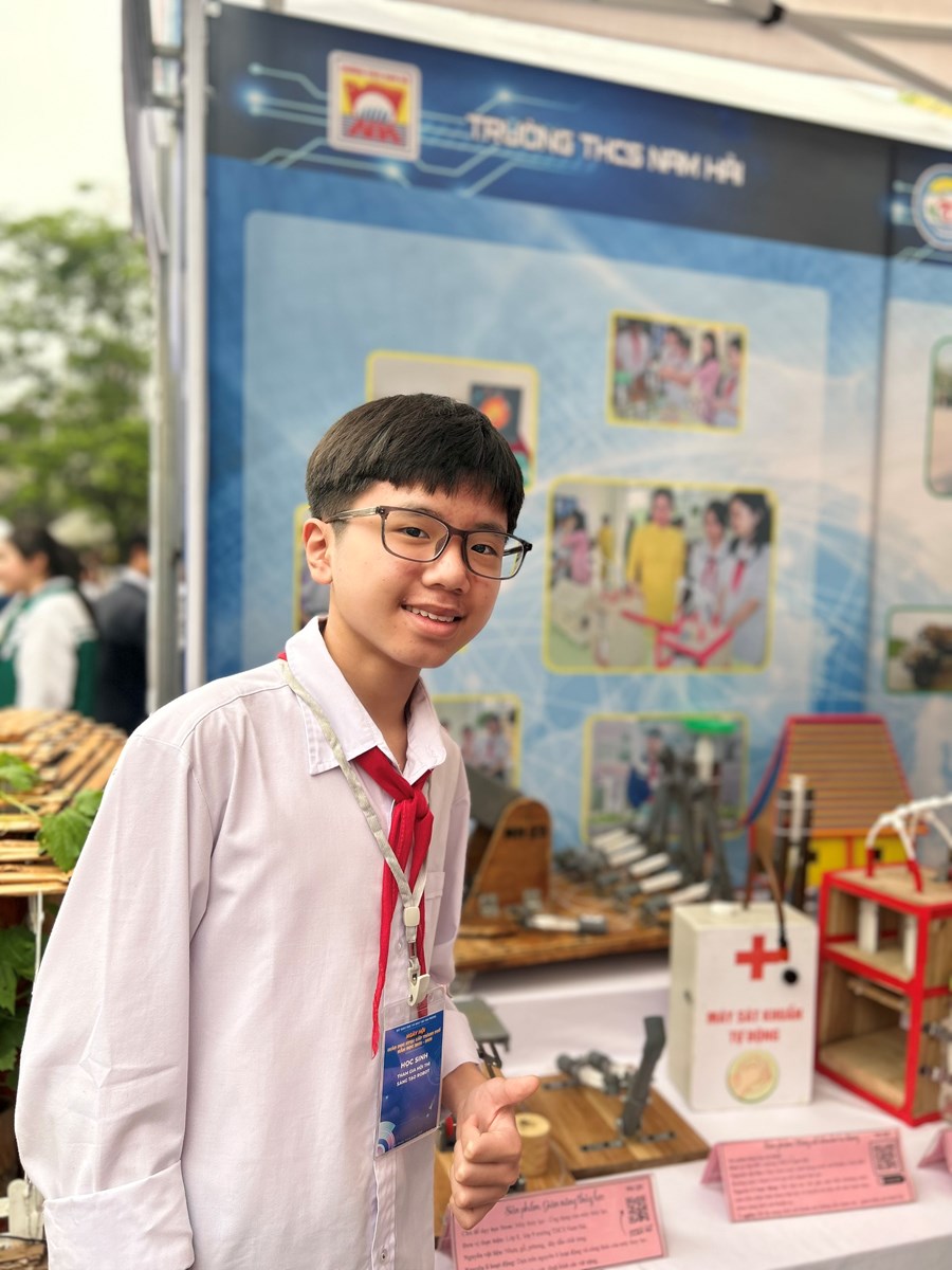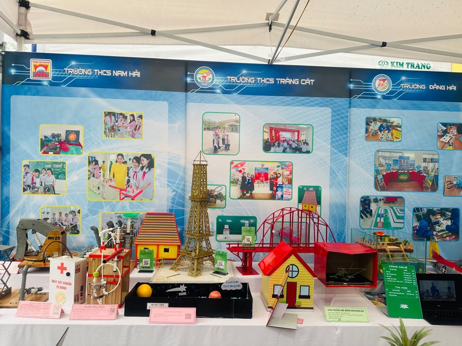 🌸Đến với Hội thi cùng các trường THCS trong quận Hải An, trường THCS Nam Hải tham gia các phần thi: trưng bày các sản phẩm STEM với 08 sản phẩm tham gia đến từ các lớp được vinh dự trưng bày tại Ngày hội giáo dục STEM cấp Thành phố. Em Lương Thái Lâm lớp 9A2 trình bày các sản phẩm STEM cùng với sự hỗ trợ của cô giáo Nguyễn Thị Bích Liên, Nguyễn Thị Vân.