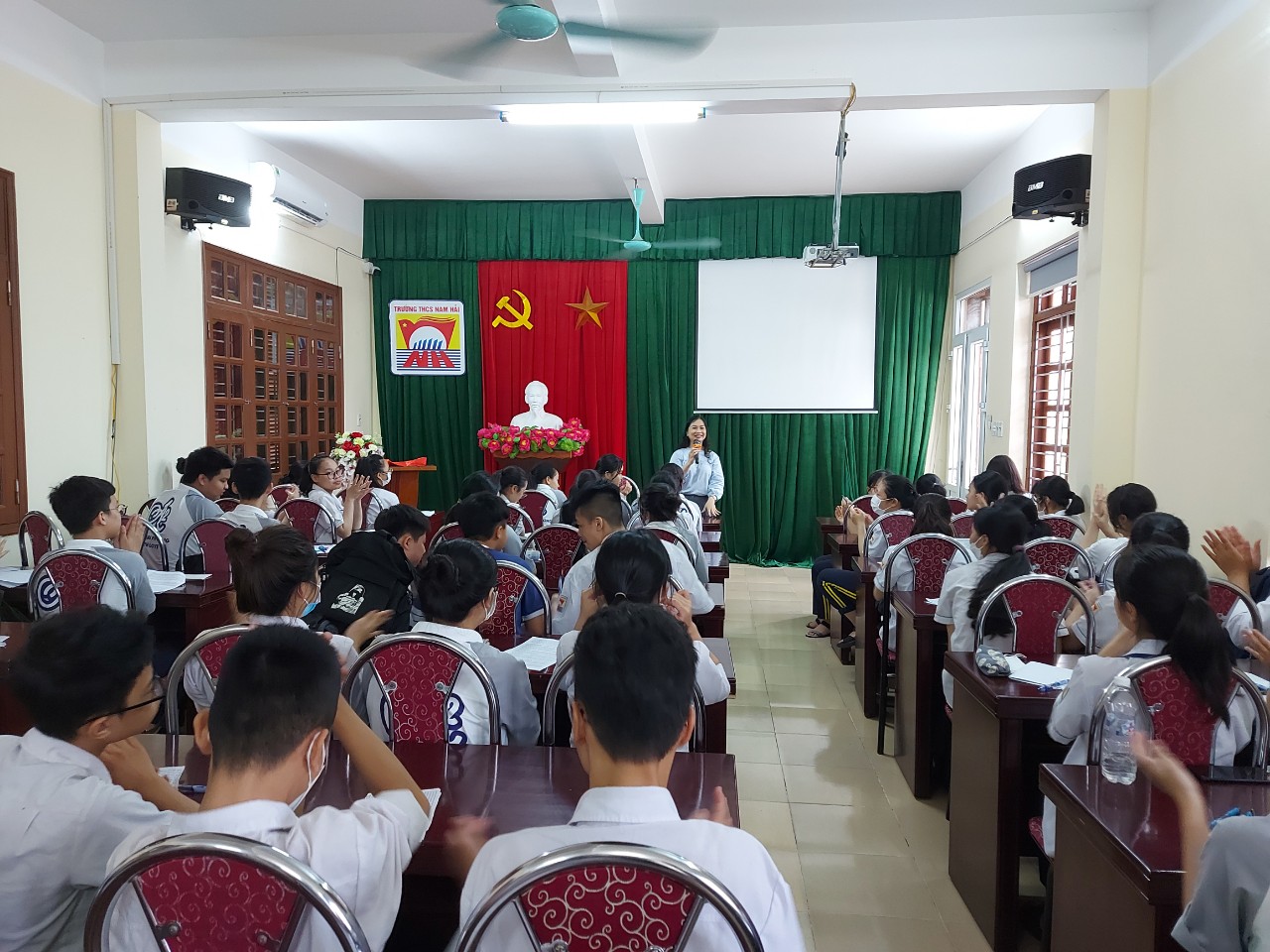 Vào hồi 8h00 ngày 04 tháng 10 năm 2022 Trường THCS Nam Hải tổ chức buổi tiếp xúc học sinh thi vào lớp 10 THPT năm học 2021-2022. Với sự có mặt của các thầy cô giáo trong BGH, giáo viên ôn thi học sinh khối 9, Ban giám hiệu nhà trường đã có lời chúc và động viên, chỉ bảo, nhắc nhở, dặn dò các em học sinh trước khi tham gia kỳ thi lớp 10 THPT đạt kết quả thật cao. Nhà trường tặng bút lưu niệm, kỳ thi quan trọng tới rồi, hãy bình tĩnh, thật tự tin để hoàn thành bài thi tốt nhé.