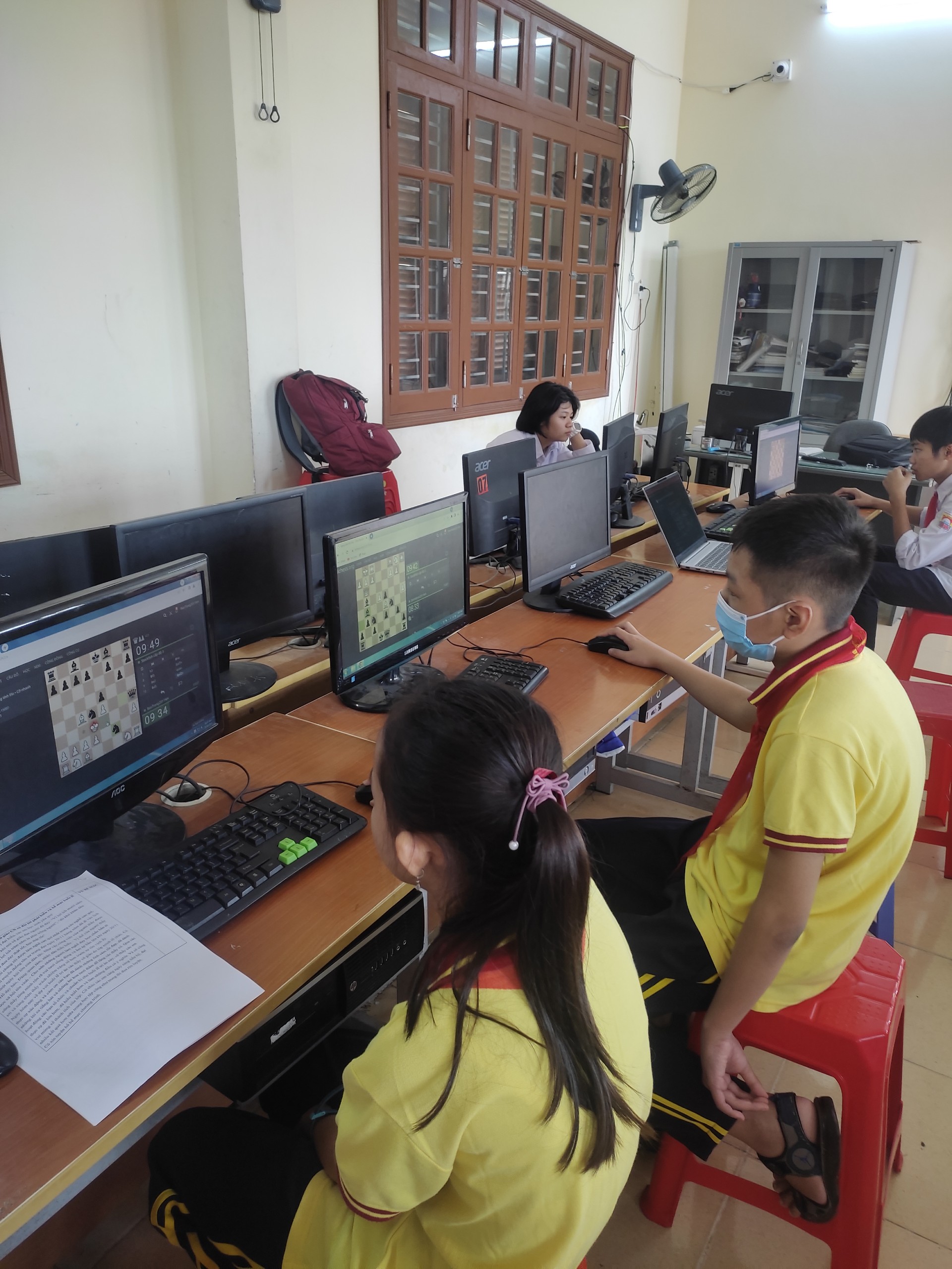 Đồng thời nhà trường đã Thành lập đội tuyển, lập danh sách học sinh đăng ký thi đấu cấp quận được gửi theo hình thức trực tuyến tại Website của giải (covuahocduong.edu.vn); Cô giáo Phạm Thị Hằng và thầy giáo Phạm Duy Mạnh hướng dẫn, động viên học sinh tạo tài khoản chơi cờ vua trực tuyến trên phần mềm Lichess.