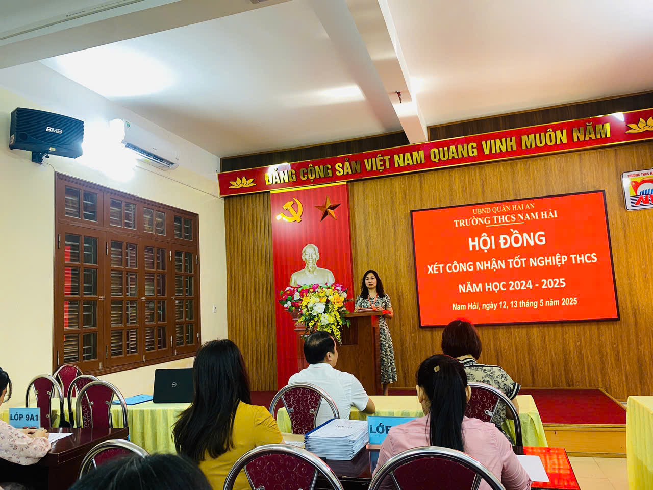 Thực hiện Quyết định số 48/QĐ-UBND ngày 08 tháng 5 năm 2025 của Phòng Giáo dục và Đào tạo quận Hải An về việc thành lập các hội đồng xét công nhận tốt nghiệp THCS Trường THCS Nam Hải năm học 2024-2025.