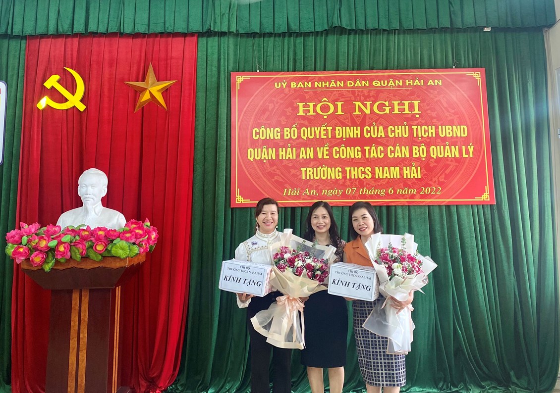 Thực hiện sự điều động, luân chuyển của Chủ tịch UBND quận Hải An tháng 6/2022, trường THCS Nam Hải có đ/c Trịnh Thị Tố Uyên-Nguyên Phó hiệu trưởng trường THCS Nam Hải được điều động, bổ nhiệm làm Phó Hiệu trưởng trường THCS Đằng Lâm và vinh dự được đón đ/c Tạ Văn Đồng-Nguyên Tổ trưởng tổ KHTN trường THCS Đông Hải được điều động, bổ nhiệm Phó Hiệu trưởng trường THCS Nam Hải