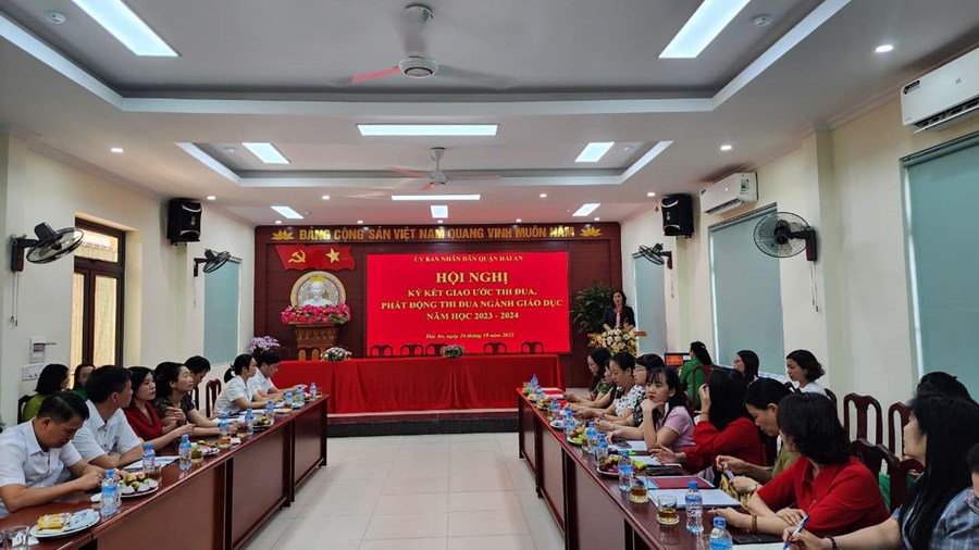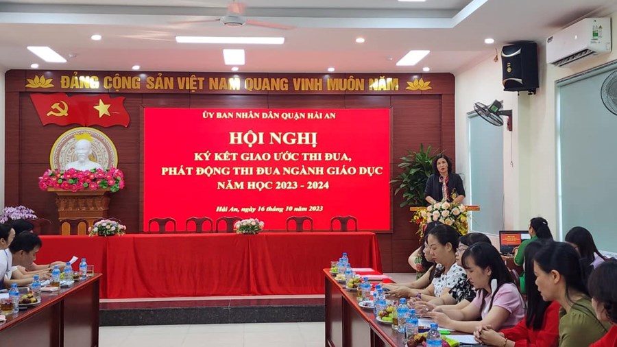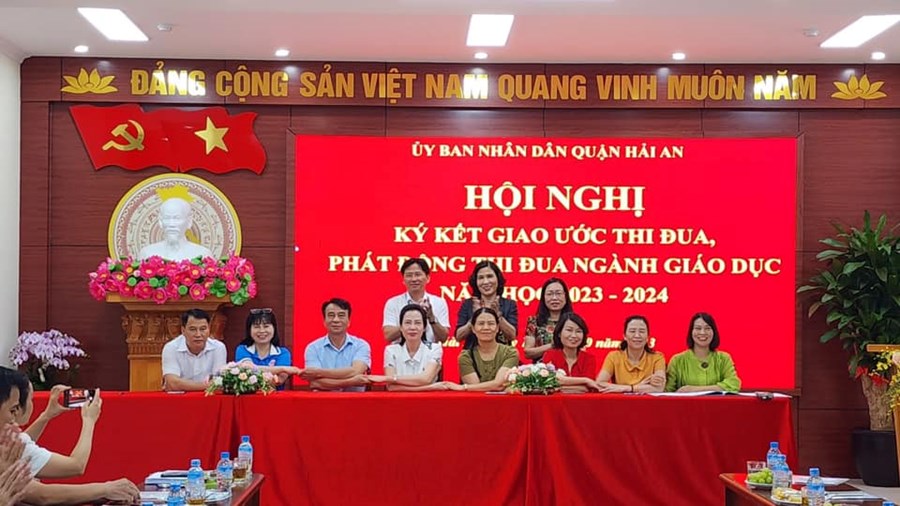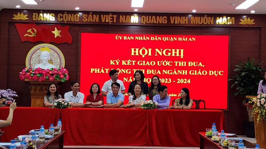 Về phía trường THCS Nam Hải có đ/c Khoa Thị Thu Thủy - Hiệu trưởng nhà trường, đ/c Phạm Thị Dinh-CTCĐ tham dự. Hội nghị đã thống nhất xây dựng kế hoạch và phương hướng thi đua năm học 2023 - 2024. Các đơn vị trường THCS trong quận Hải An đã cùng nhau ký kết bản giao ước thi đua năm học 2023 - 2024, quyết tâm giữ vững và phát huy các thành tích đã đạt được, phấn đấu hoàn thành xuất sắc nhiệm vụ năm học này.