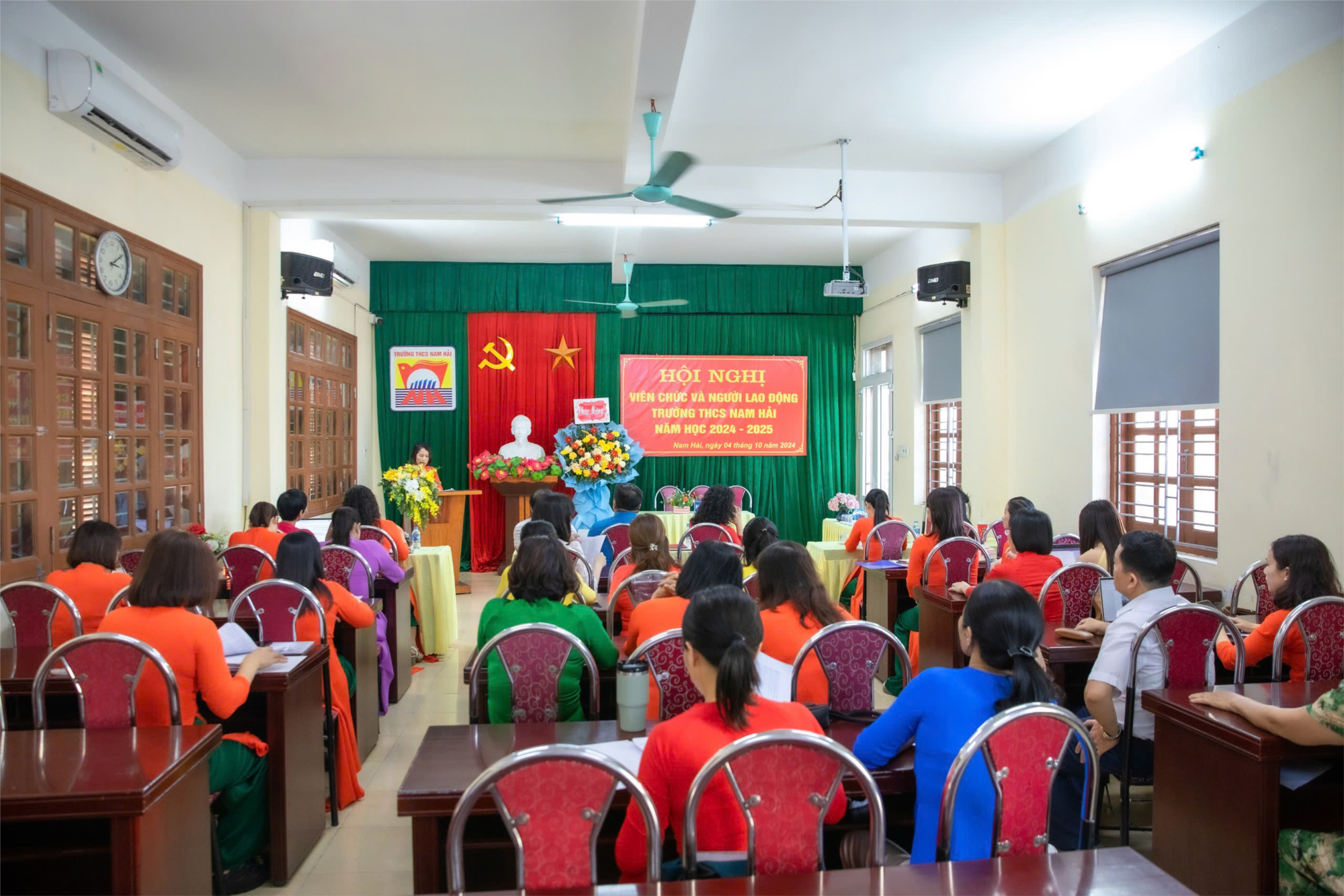 Năm học 2024-2025 đã bắt đầu trong niềm hân hoan phấn khởi của thầy và trò nhà trường, với hy vọng một năm học bình yên, không bị gián đoạn bởi dịch bệnh. Vào hồi 15h00 ngày 04 tháng 10 năm 2024, trường THCS Nam Hải quận Hải An long trọng tổ chức Hội nghị viên chức và người lao động năm học 2024-2025.