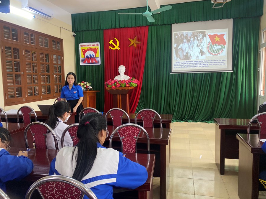 Nằm trong chuỗi các hoạt động chào mừng kỷ niệm 92 năm Ngày thành lập Đoàn TNCS Hồ Chí Minh đồng thời nhằm đẩy mạnh công tác giáo dục truyền thống yêu nước, lý tưởng cách mạng thanh niên; nâng cao nhận thức về Đoàn TNCS Hồ Chí Minh, về ý nghĩa vinh dự của người đoàn viên TNCS Hồ Chí Minh. Hôm nay ngày 22/03/2023 Ban chấp hành Chi Đoàn trường THCS Nam Hải đã long trọng tổ chức buổi tập huấn lớp cảm tình Đoàn, chuẩn bị kết nạp Đoàn viên mới. 25 đội viên ưu tú sẽ được kết nạp vào Đoàn thanh niên cộng sản Hồ Chí Minh.