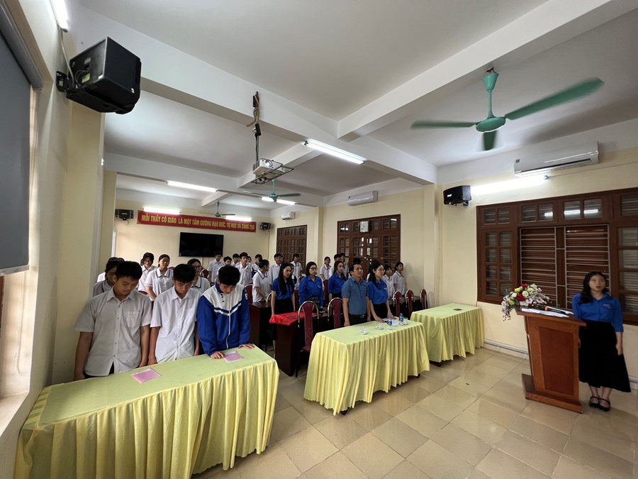 Trước cờ Tổ quốc, cờ Đoàn, trước chân dung của Bác Hồ vĩ đại, em Trần Thị Phương Anh đại diện cho 25 đoàn viên mới đã đọc lời hứa quyết tâm ra sức rèn luyện, tu dưỡng phẩm chất đạo đức theo gương Bác Hồ vĩ đại; thực hiện tốt các phong trào thi đua yêu nước; hăng hái học tập, rèn luyện, sáng tạo; xung kích, tình nguyện, đoàn kết giương cao lá cờ vinh quang của thế hệ trẻ góp phần xây dựng quê hương ngày càng giàu đẹp, văn minh.