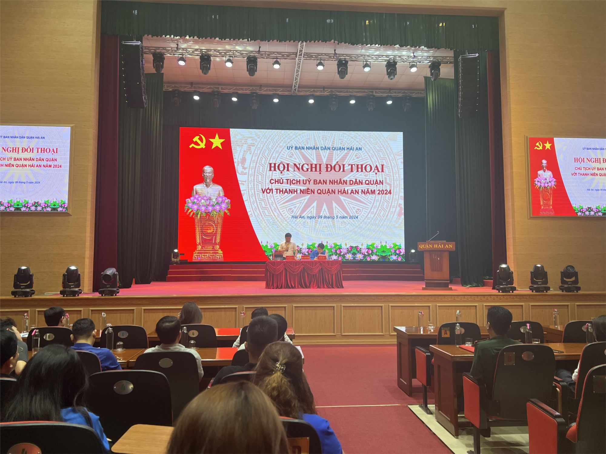 Chiều 09/5, quận Hải An tổ chức hội nghị đối thoại giữa đồng chí Chủ tịch UBND quận Dương Đình Ổn với thanh niên quận Hải An năm 2024. Đồng chí Lê Khắc Nguyên Anh- Phó bí thư Thành Đoàn tới dự. Cùng tham dự hội nghị có các đồng chí đại diện lãnh đạo các phòng, ban, ngành, đoàn thể quận, Bí thư Đảng uỷ, Chủ tịch UBND 08 phường và trên 200 đoàn viên, thanh niên đại diện các tổ chức cơ sở Đoàn, Hội, Đội trên địa bàn.