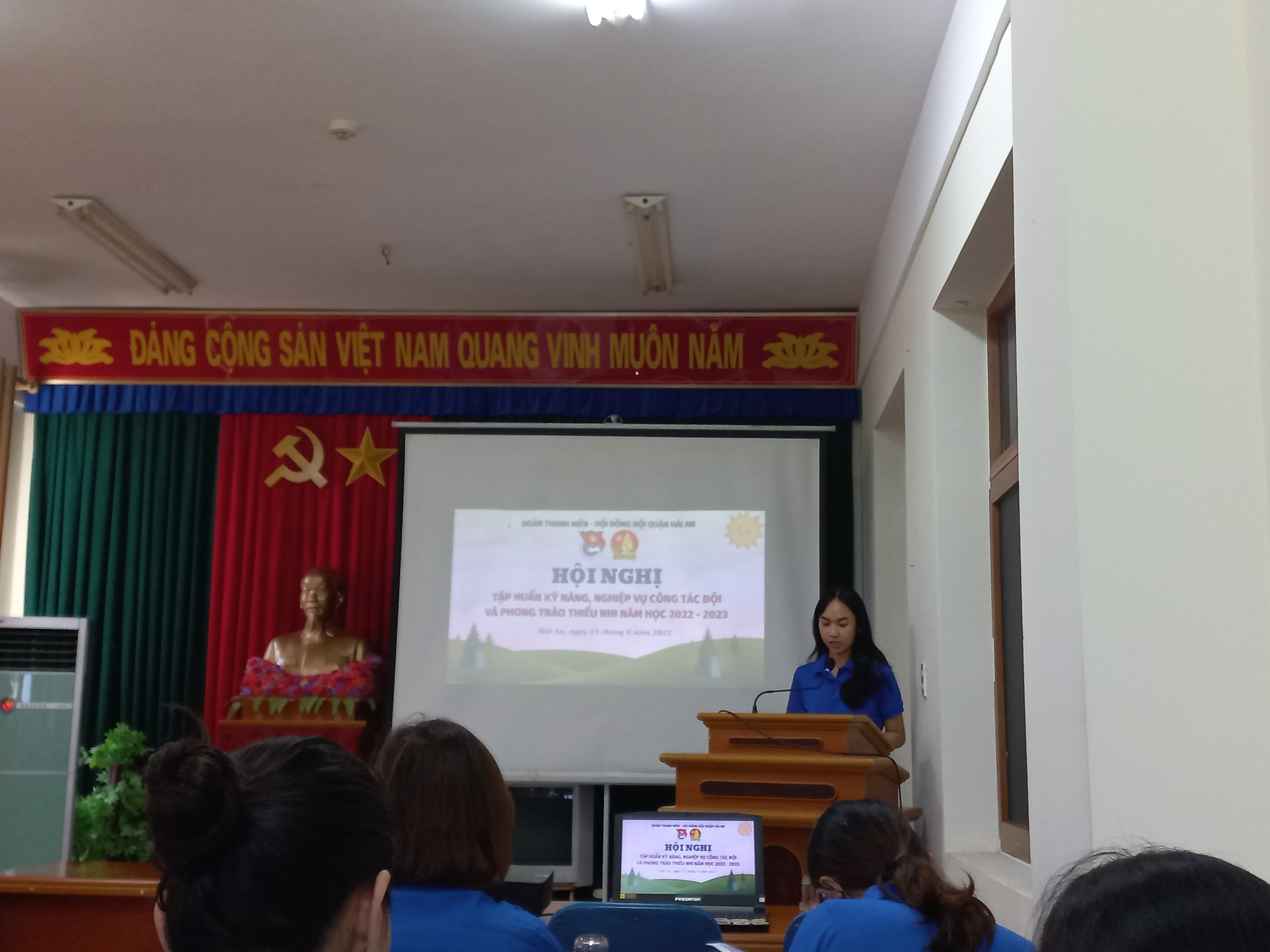 Chiều ngày 15/9/2022, đc Đoàn Thị Thu Hương - GV TPT Đội tham gia Hội nghị tập huấn kĩ năng, nghiệp vụ công tác Đội và phong trào thiếu nhi năm học 2022-2023. Hội nghị triển khai 2 chuyên đề: