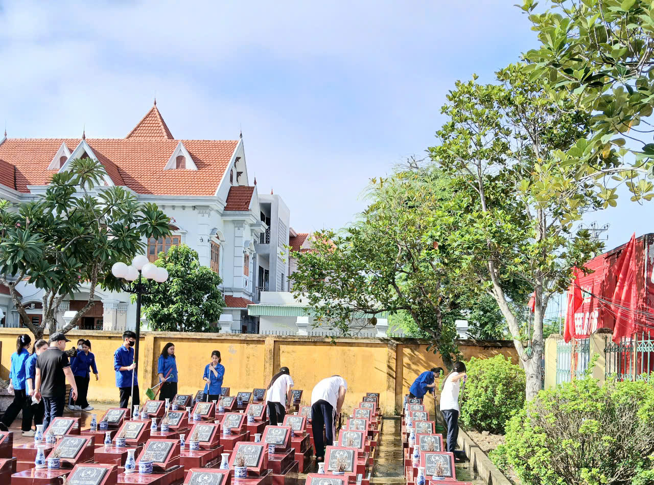 Sáng ngày 23/7/2025Các em học sinh trường THCS Nam Hải đã tiến hành vệ sinh chỉnh trang khuôn viên Nghĩa trang liệt sĩ, tích cực lau dọn bia mộ, nhổ cổ và thay hoa mới trên các phần mộ liệt sĩ. Các em hoàn thành công việc có trách nhiệm và chu đáo, thành kính tỏ lòng biết ơn sâu sắc đối với những người con quê hương đã anh dũng hy sinh vì nền độc lập, tự do của Tổ quốc, vì hạnh phúc của Nhân dân.