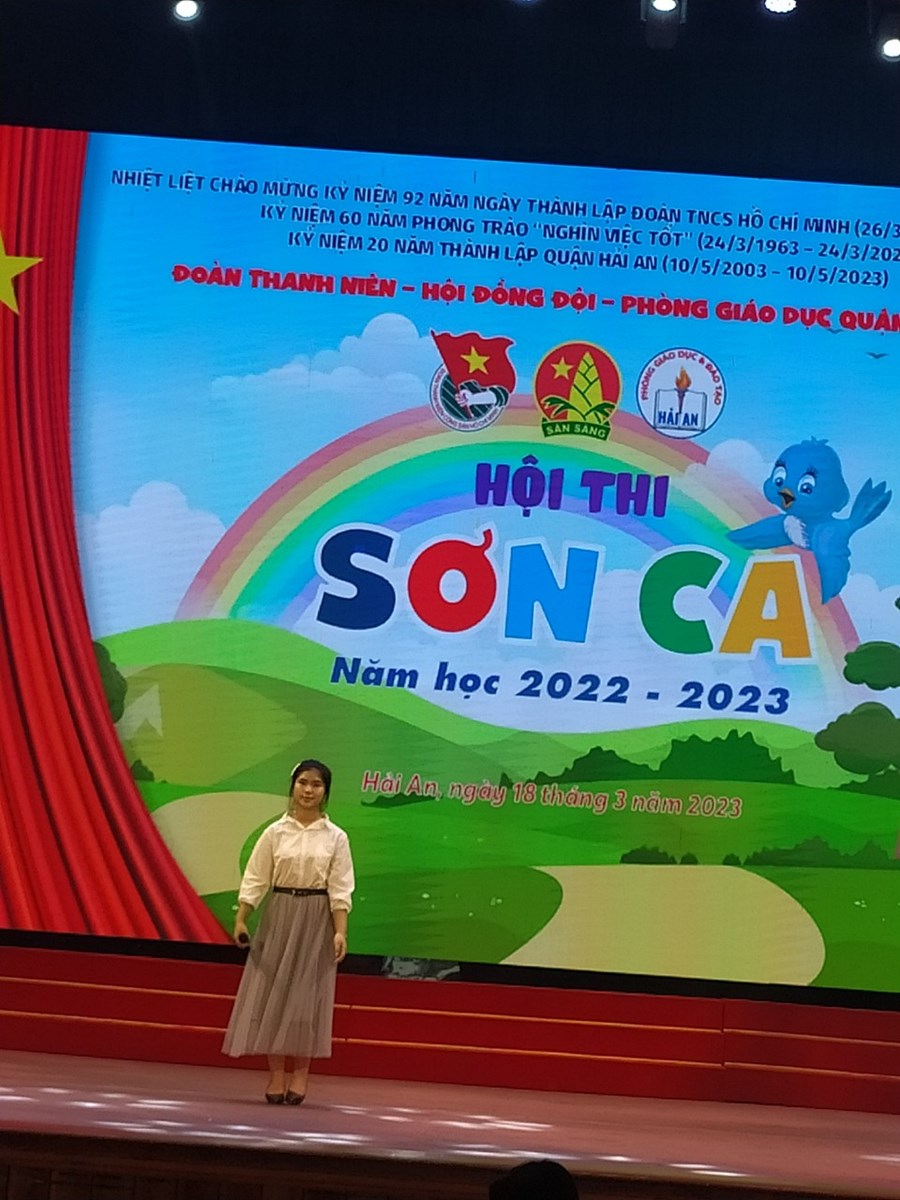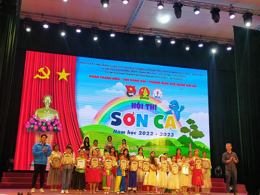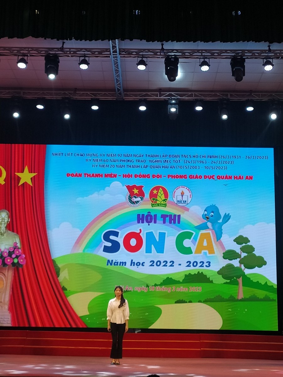 Thực hiện kế hoạch của Quận Đoàn - Phòng giáo dục và Đào tạo quận Hải An về việc tham gia hội thi Sơn ca quận Hải An năm học 2022 - 2023, Liên đội đã lập kế hoạch, tổ chức vòng sơ khảo hội thi Sơn ca cấp Liên đội để lựa chọn các thí sinh xuất sắc tham gia thi cấp Quận. Sau hội thi cấp liên đội đã lựa chọn được Ba thí sinh xuất sắc nhất để tham gia vòng chung kết hội thi sơn ca Quận Hải An năm học 2022 – 2023. Đó là các em Nguyễn Kim Ngân lớp 9A1 với tiết mục Uống trà, em Phạm Hà Hải Yến lớp 9A3 với tiết mục Hà Giang ơi.