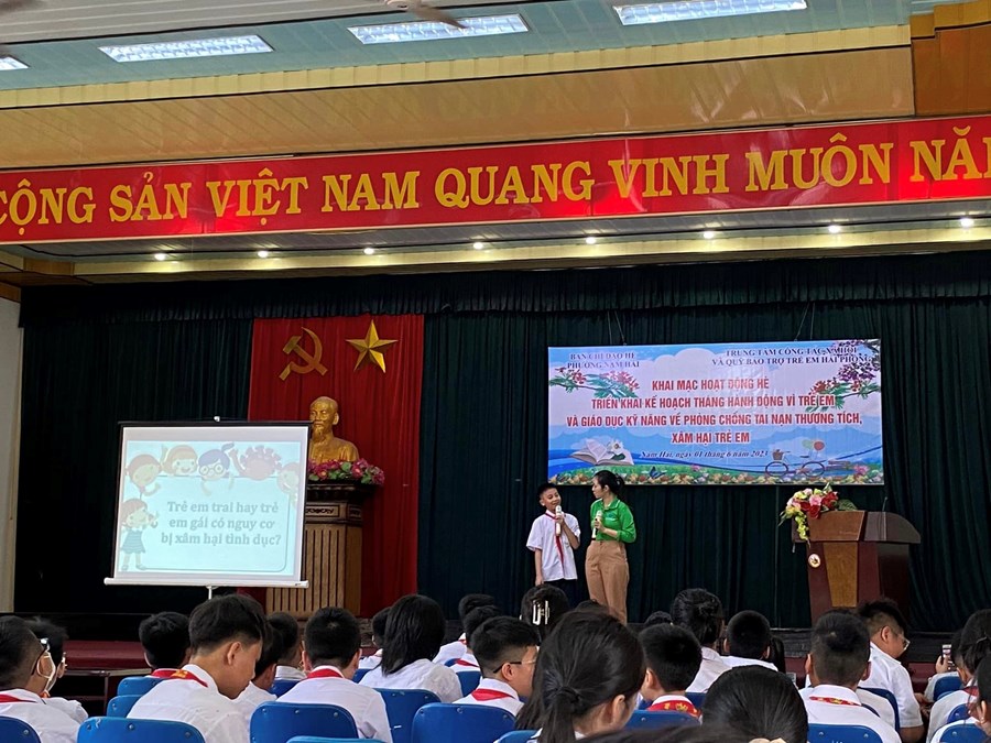 Đồng thời giáo dục kĩ năng phòng, chống tai nạn thương tích, xâm hại trẻ em năm 2023. Tại chương trình các em được cung cấp các thông tin quy định hiện hành về bảo vệ, chăm sóc trẻ em; Cung cấp các kiến thức phòng ngừa trẻ em bị xâm hại, bạo lực, tai nạn thương tích rơi vào hoàn cảnh đặc biệt là thực hành tình huống giả định.