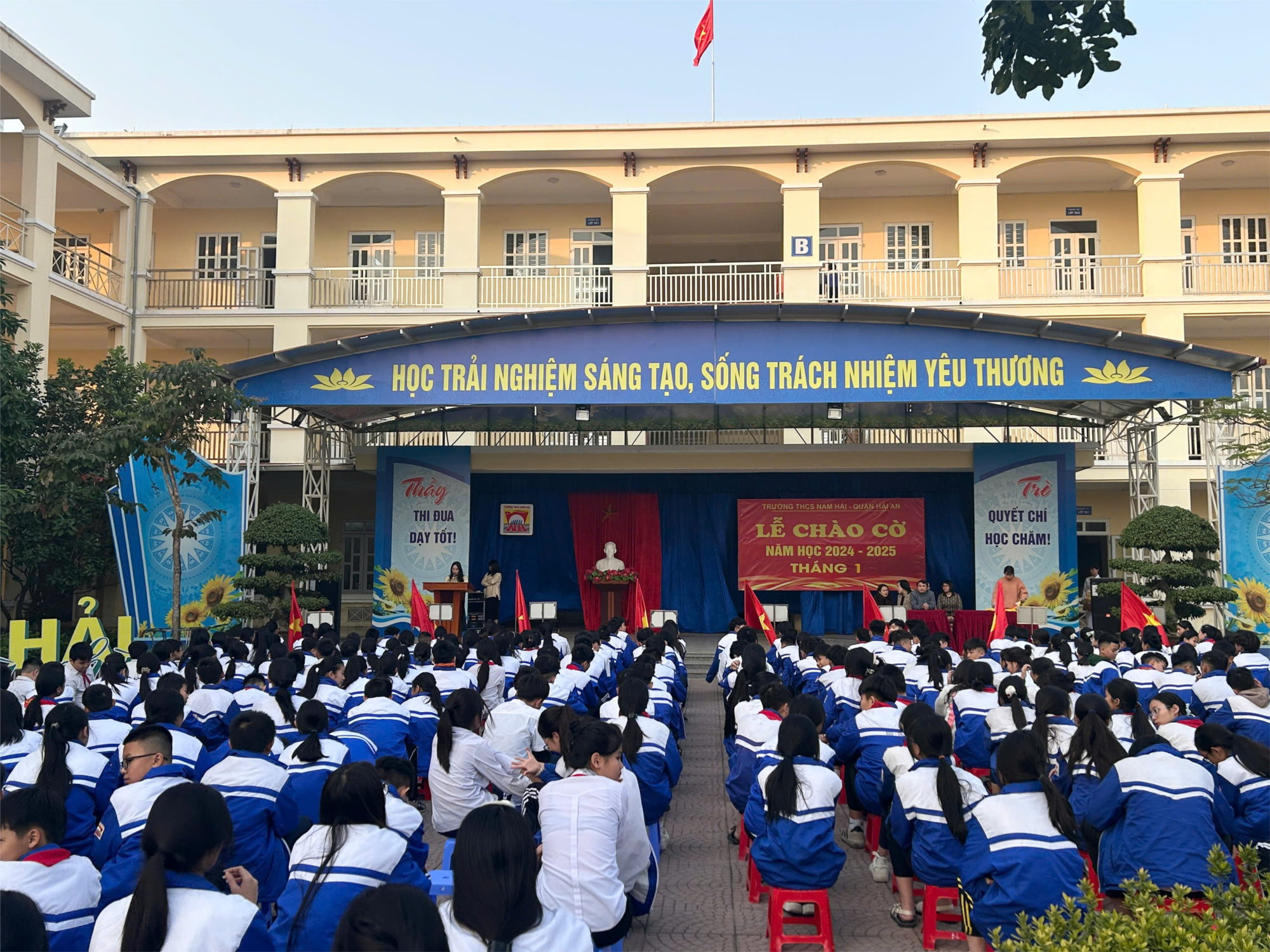 Thực hiện kế hoạch năm học 2024- 2025 của trường THCS Nam Hải, ngày 06/01/2025, nhà trường đã tổ chức Lễ chào cờ tháng 01 với sự tham gia của các thầy cô giáo và tất cả các em học sinh.