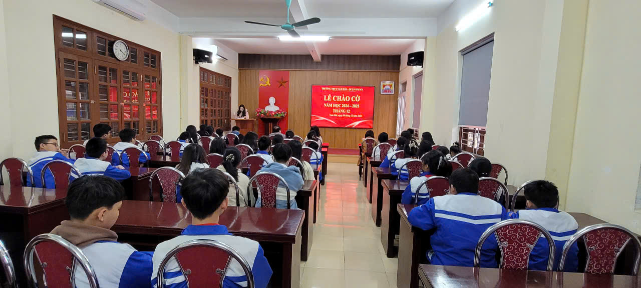 Thực hiện kế hoạch năm học 2024- 2025 của trường THCS Nam Hải, ngày 09/12/2024, nhà trường đã tổ chức Lễ chào cờ tháng 12 với sự tham gia của các thầy cô giáo và tất cả các em học sinh.
