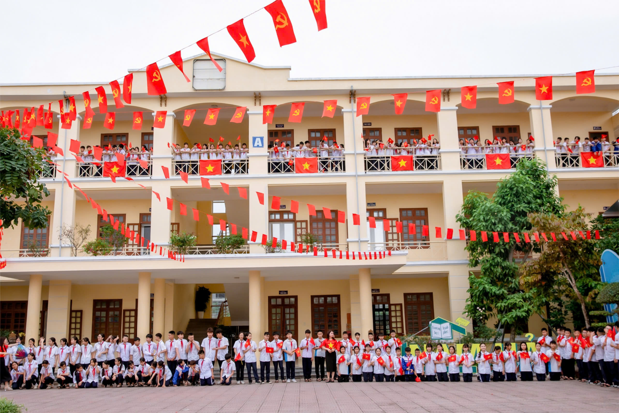 Đến trường Nam Hải những ngày này, sắc cờ đỏ, sao vàng rực rỡ tung bay từ cổng trường đến từng lớp học, hình ảnh ấy không chỉ tạo nên bầu không khí trang nghiêm, mà còn mang ý nghĩa giáo dục sâu sắc. Mỗi học sinh, giáo viên khi bước vào trường đều dừng lại đôi chút để ngước nhìn lá cờ đỏ sao vàng tung bay trong gió, để cảm nhận rõ hơn không khí hào hùng của một mốc son chói lọi trong lịch sử dân tộc. Đây không chỉ là hoạt động trang trí đơn thuần mà còn là một thông điệp giáo dục mạnh mẽ, khơi dậy lòng yêu nước, tinh thần tự hào dân tộc trong mỗi học sinh.