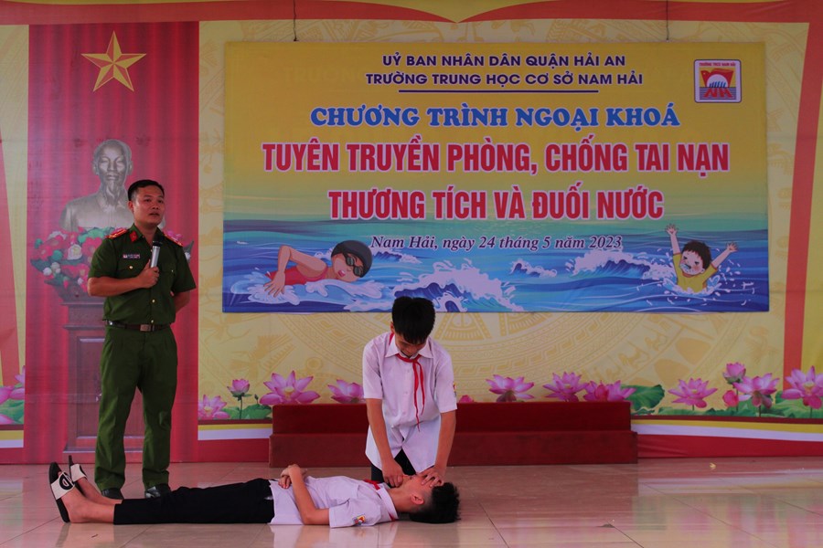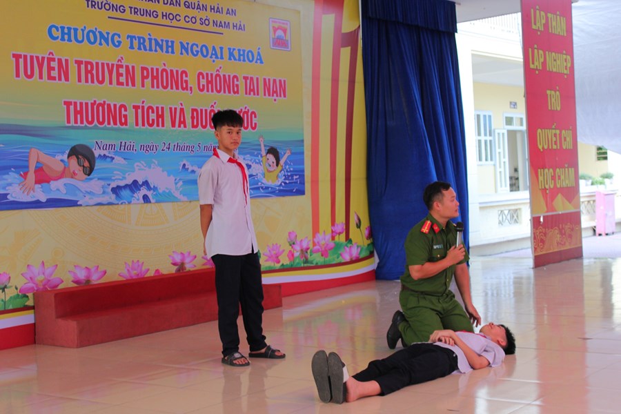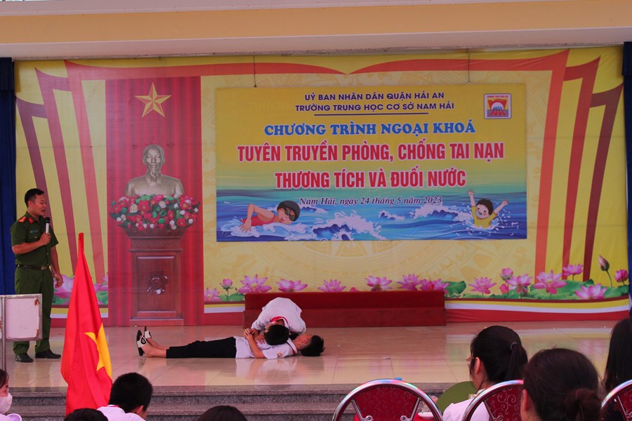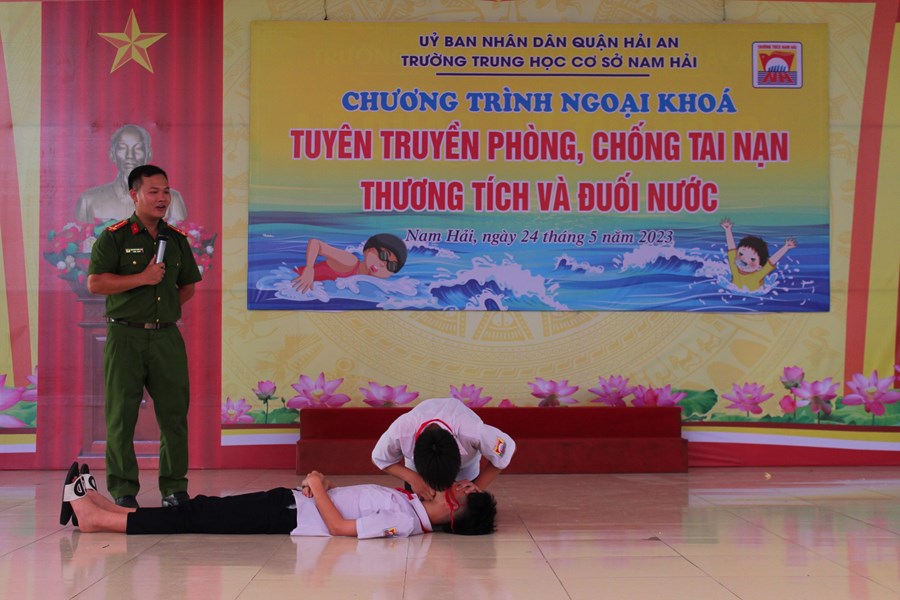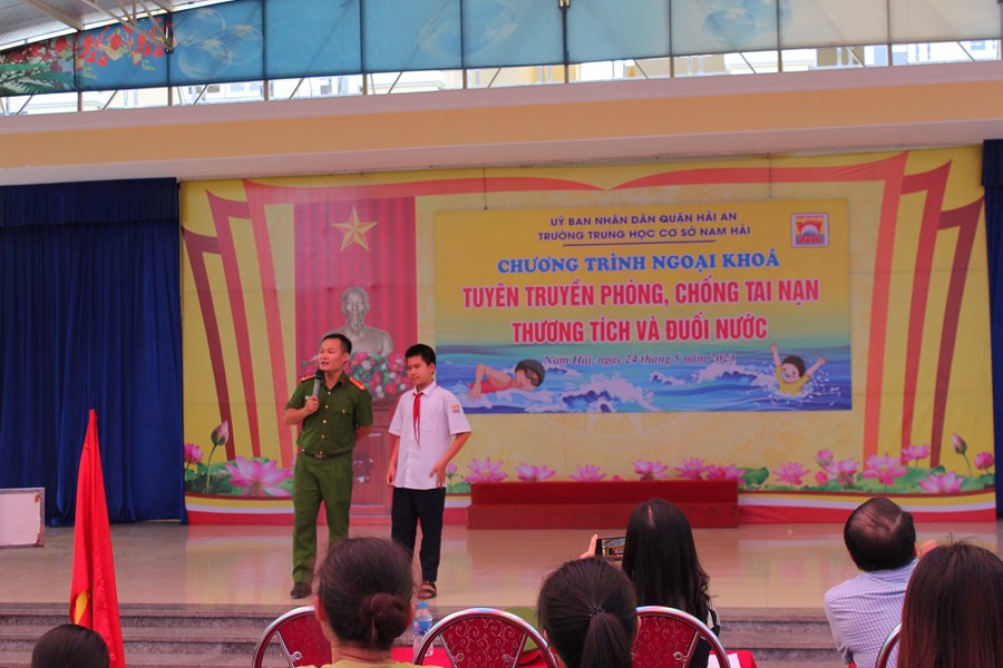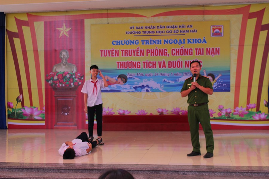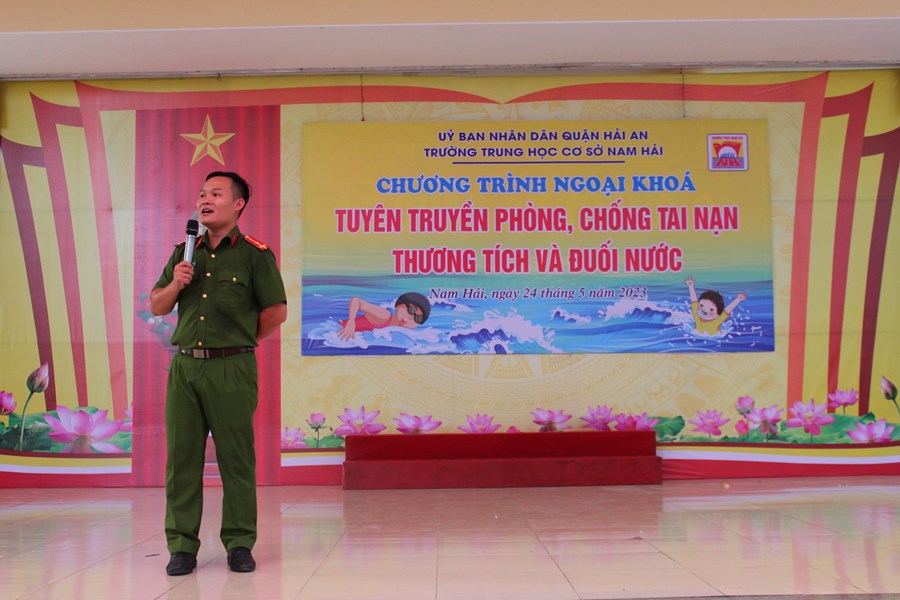 Một mùa hè nữa lại về, để phòng tránh các tai nạn thương tích cho trẻ em, đặc biệt là tai nạn đuối nước, chiều ngày 24/5/2023 trường THCS Nam Hải phối hợp với phòng PC07 công an thành phố Hải Phòng tổ chức buổi tuyên truyền phòng chống đuối nước cho CB-GV-NV và HS nhà trường.