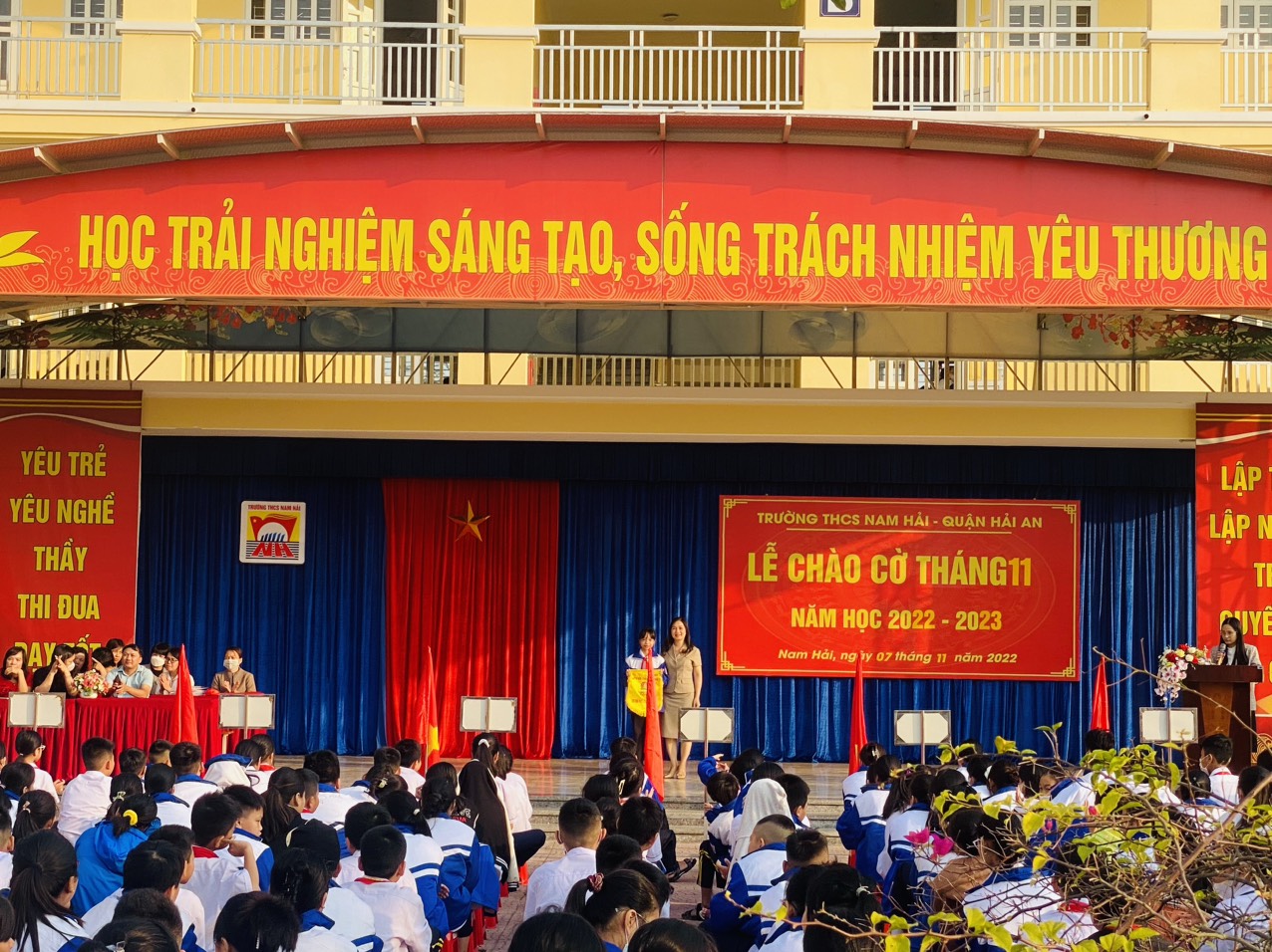 Tới dự buổi lễ chào cờ có các cô giáo trong BGH, các thầy cô trong hội đồng sư phạm nhà trường cùng toàn thể các em học sinh.