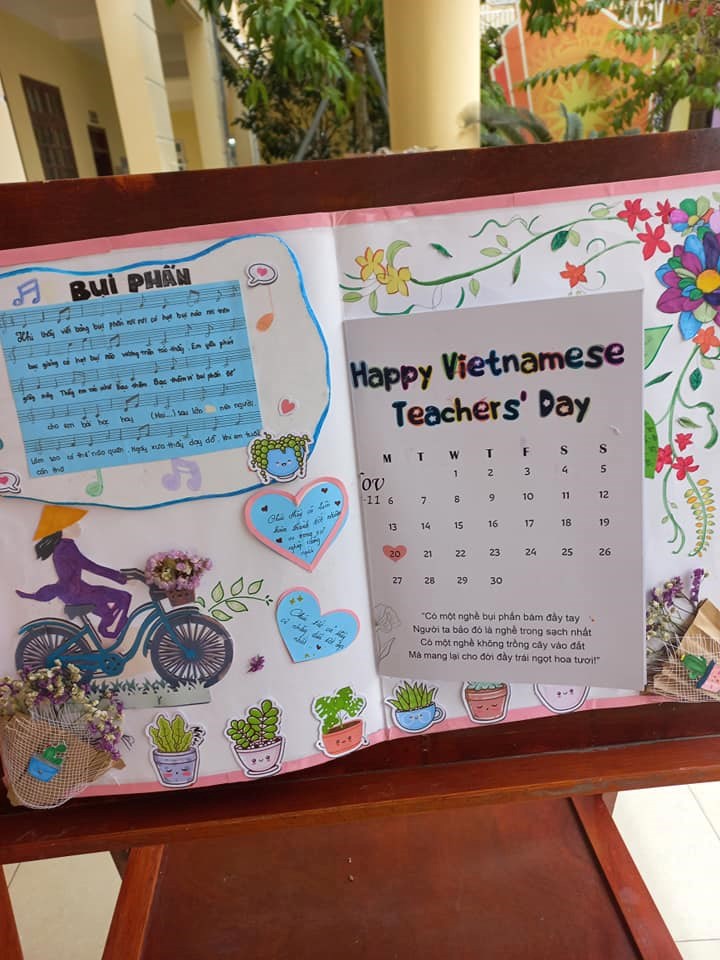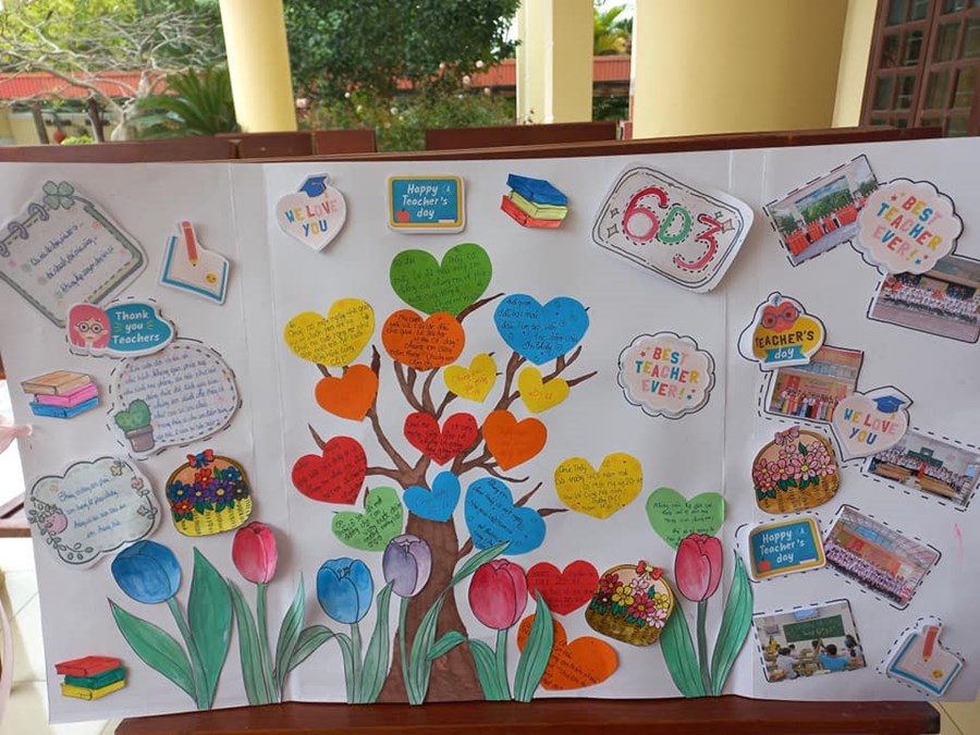 Nằm trong chuỗi các hoạt động hướng đến chào mừng kỉ niệm 41 năm Ngày Nhà giáo Việt Nam 20/11, cuộc thi thiết kế thiệp đã nhận được sự hưởng ứng nhiệt tình của 15 lớp với nhiều sản phẩm được thiết kế công phu. Đây là hoạt động giàu ý nghĩa thay lời tri ân, biết ơn sâu sắc của các em học sinh gửi tới thầy cô giáo - người lái đò thầm lặng, miệt mài chở tri thức cập bến. Đồng thời cũng là hoạt động bổ ích nhằm phát huy năng khiếu nghệ thuật cho học sinh.