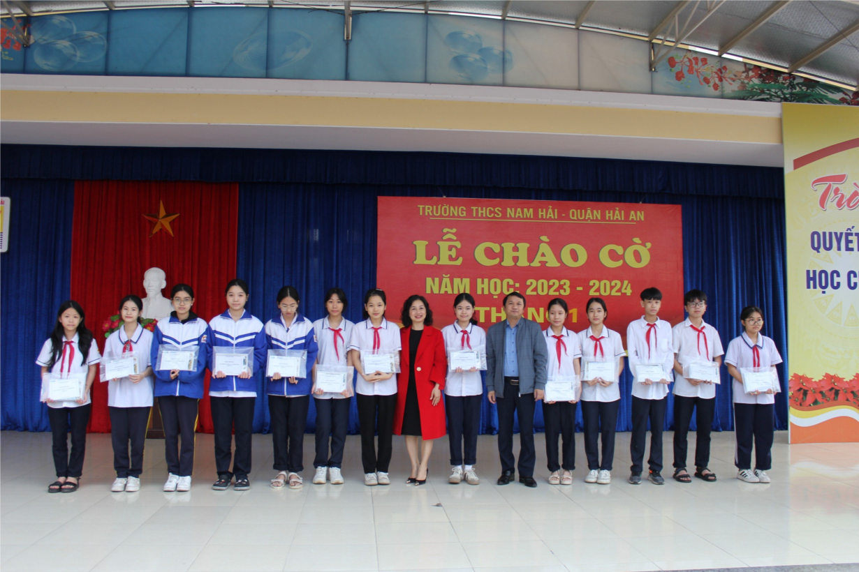 Cũng trong buổi lễ chào cờ, cô giáo Khoa Thị Thu Thủy - Hiệu trưởng nhà trường đã trao tặng cờ thi đua, phần thưởng cho các chi đội xuất sắc trong thi đua học kỳ I gồm Chi đội 7C1, 7C5, 7C4, 9A2, 8B2. Đồng thời cô cũng căn dặn nhắc nhở các em học sinh chấp hành nghiêm túc Luật giao thông, phòng chống pháo nổ trong dịp lễ Tết, thực hiện đúng nội quy của nhà trường.