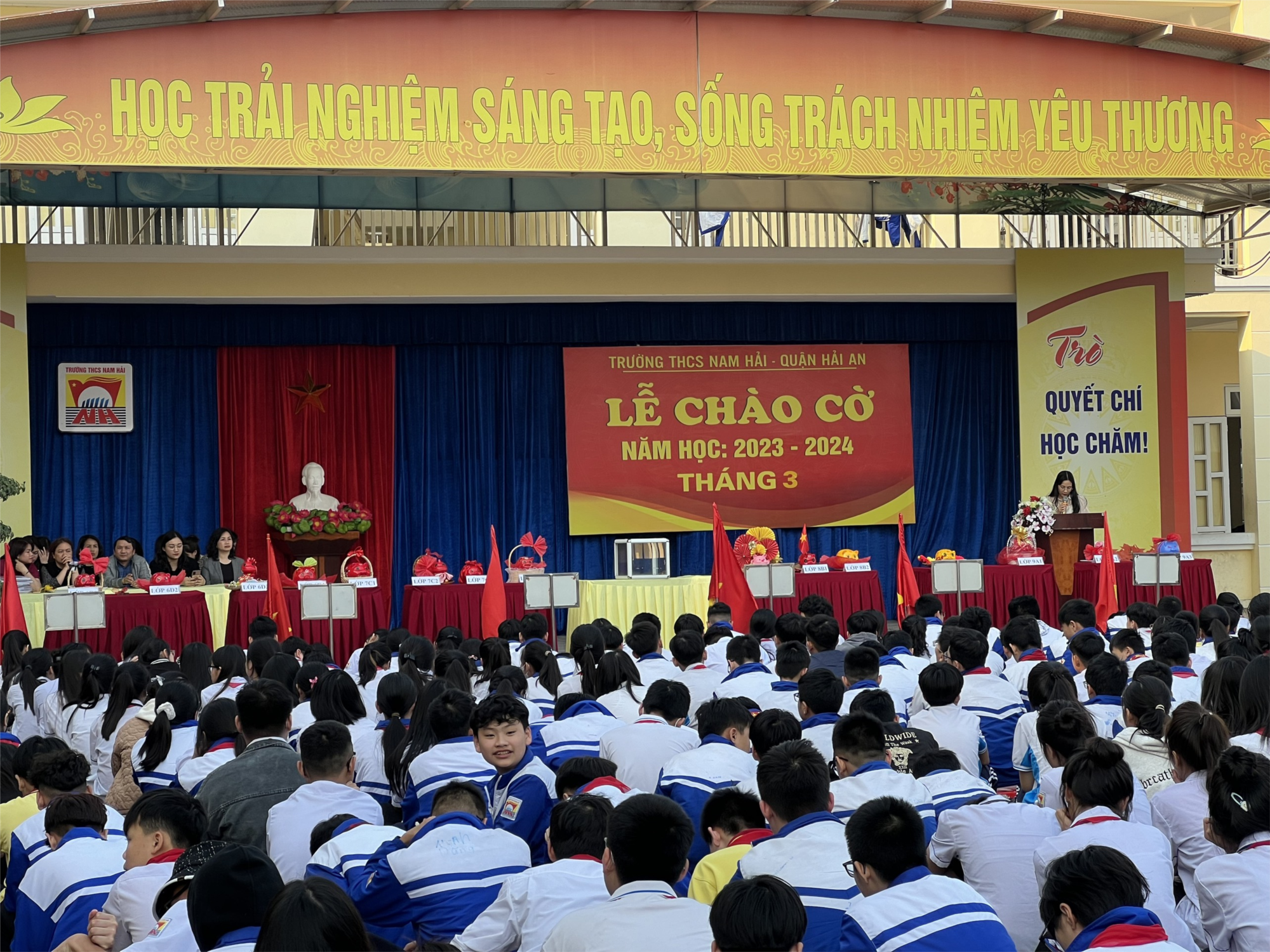 Ngày 4/3/2024, Trường THCS Nam Hải long trọng tổ chức Lễ chào cờ tháng 3 và Tổng kết cuộc vận động “Góp những đồng tiền nhỏ vì nghĩa tình lớn - Tặng quà đầu xuân giúp bạn nghèo và nạn nhân chất độc da cam” năm 2024.