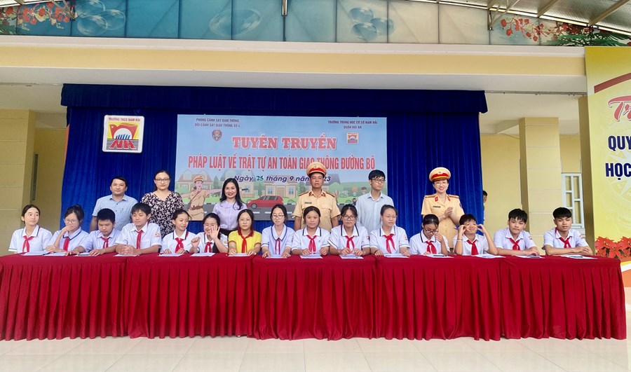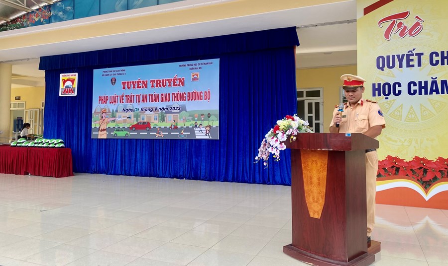 Thực hiện Công văn số 2103 ngày 8/8/2023 của Sở GD&ĐT Hải Phòng v/v tăng cường các biện pháp phòng ngừa tai nạn giao thông và vi phạm về trật tự, an toàn giao thông; và triển khai tháng an toàn giao thông năm học 2023-2024, vào hồi 16h15 ngày 25/09/2023, trường THCS Nam Hải phối hợp cùng Đội CSGT số 4, phòng CSGT, CA TP HP tổ chức tuyên truyền pháp luật về trật tự an toàn giao thông đường bộ cho CB-GV-NV và HS nhà trường.