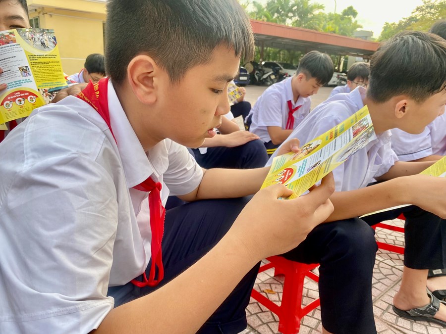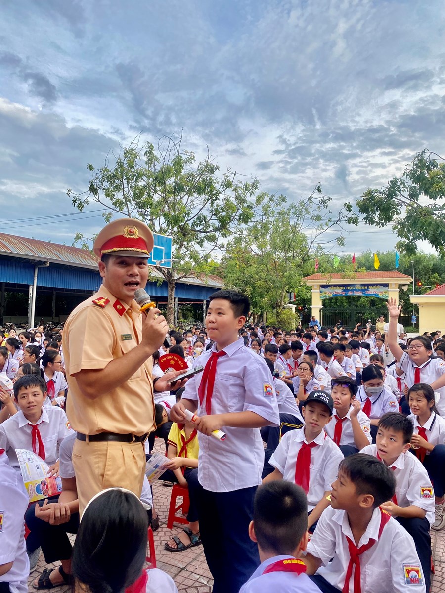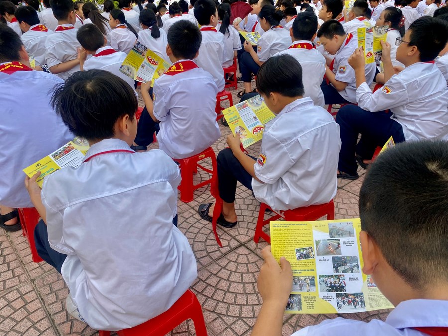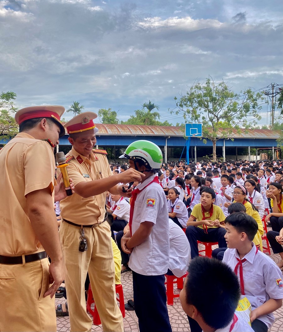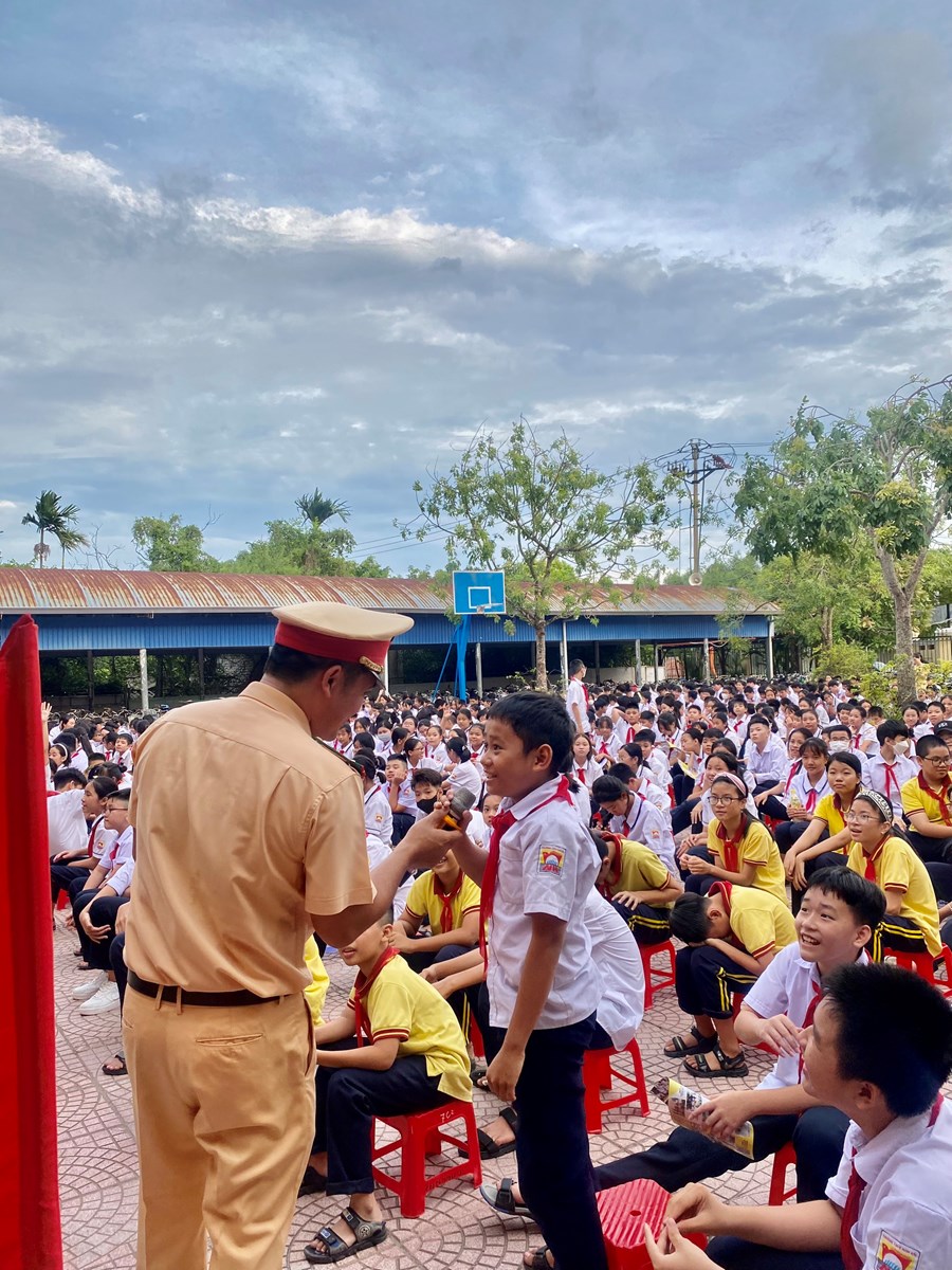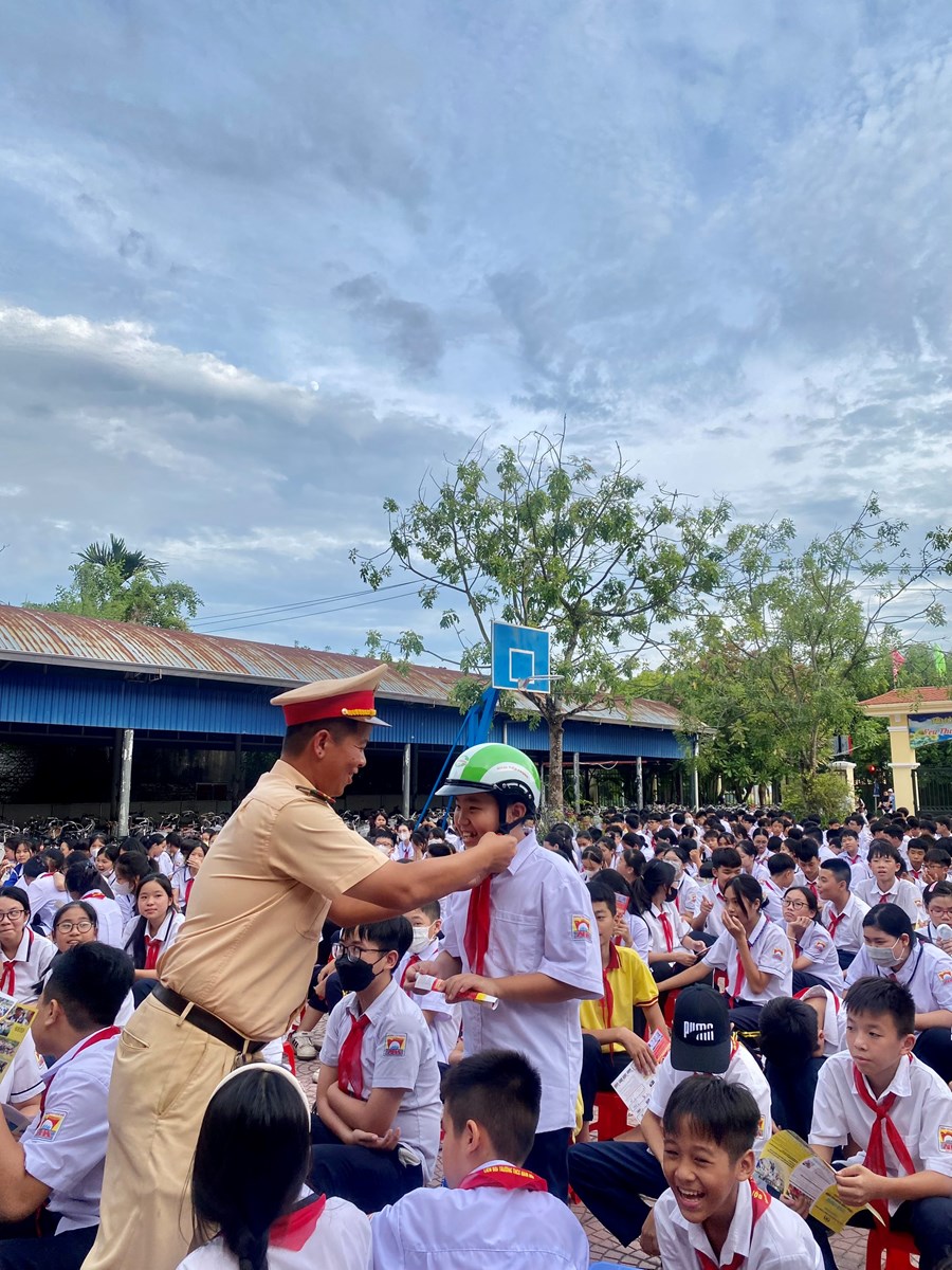 Tại buổi lễ, các em học sinh đã được tuyên truyền về hệ thống biển báo hiệu, vạch kẻ đường bộ đồng thời được hướng dẫn tham gia giao thông an toàn, kỹ năng điều khiển xe đạp điện, xe máy điện, đội mũ bảo hiểm đúng quy định… Đặc biệt, các đồng chí GVCN đã hướng dẫn các em học sinh tham gia giao thông an toàn trên tuyến đường từ nhà đến trường, từ trường về nhà. Cũng tại buổi lễ, CSGT số 4, phòng CSGT, CA TP HP đã trao tặng cho các em HS nhà trường những chiếc mũ bảo hiểm đạt chuẩn. Tại buổi tuyên truyền học sinh nhà trường đã ký cam kết thực hiện an toàn giao thông.