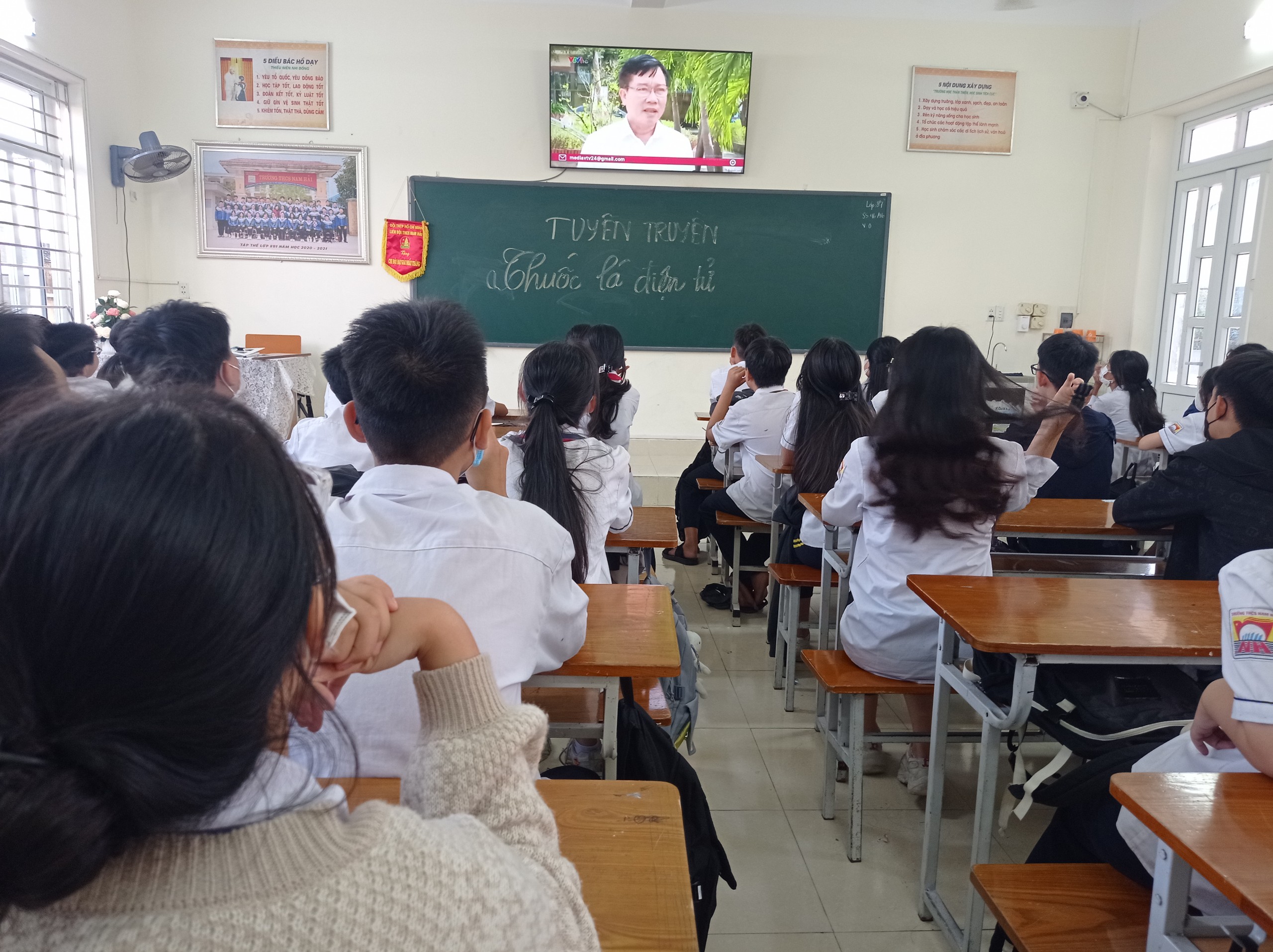 Ngày 11/11/2022, tại phòng học các lớp trường THCS Nam Hải, các em học sinh nhà trường đã được nghe tuyên truyền về tác hại của thuốc lá điện tử.
