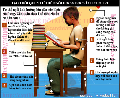 - Tư thế ngồi học đúng, ngay ngắn.