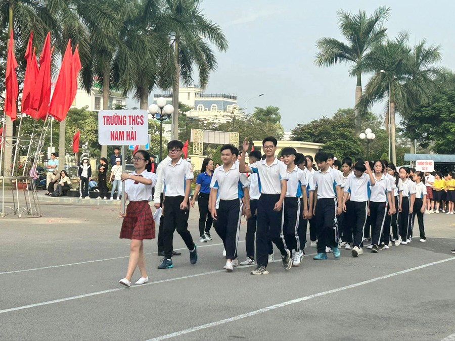 Trường THCS Nam Hải có 28 vận động viên dự thi các môn thi đấu với tinh thần vui tươi, phấn khởi, văn minh. Chúc các em bình tĩnh, tự tin, đạt thành tích cao trong hai ngày thi đấu các môn TDTT cấp Quận năm học 2023-2024