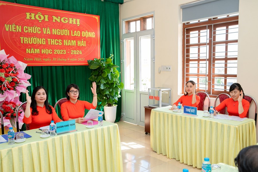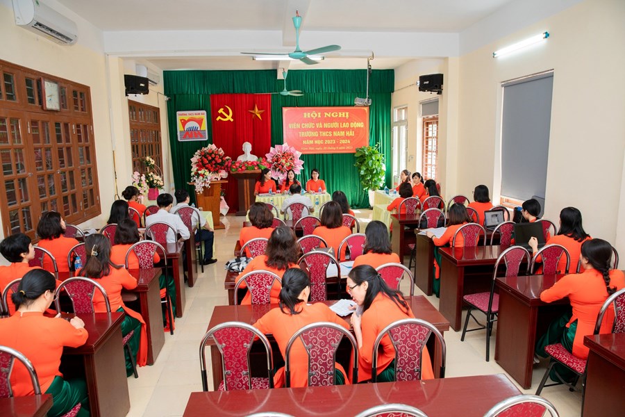 Năm học 2023-2024 đã bắt đầu trong niềm hân hoan phấn khởi của thầy và trò nhà trường, với hy vọng một năm học bình yên, không bị gián đoạn bởi dịch bệnh. Vào hồi 7h30 ngày 30 tháng 9 năm 2023, Trường THCS Nam Hải quận Hải An long trọng tổ chức Hội nghị viên chức và người lao động năm học 2023-2024.