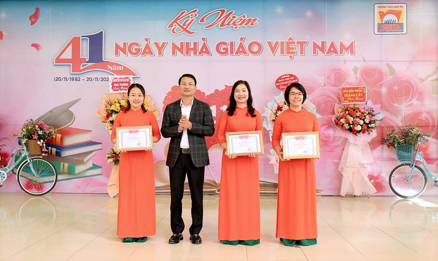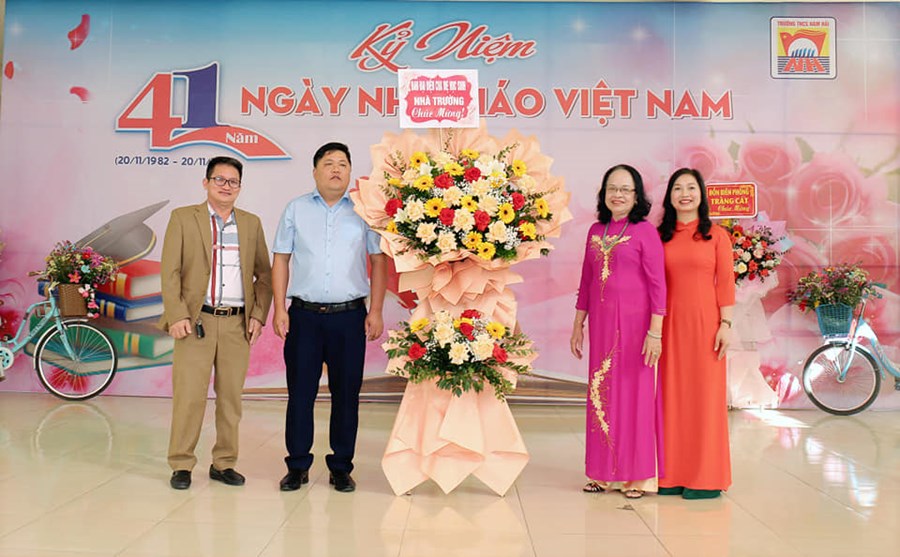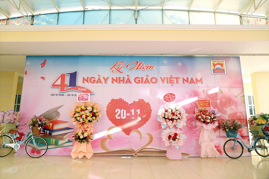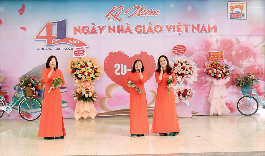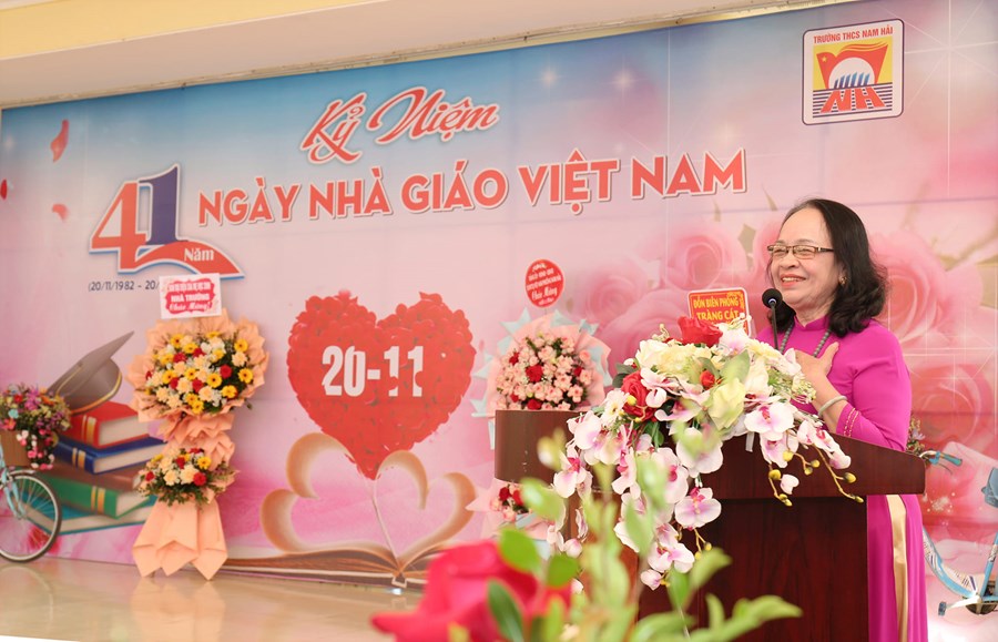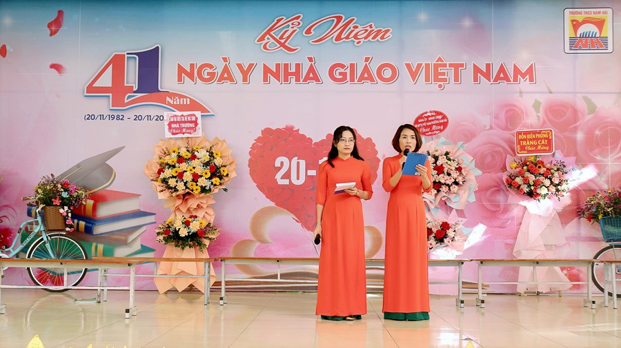 Khép lại tuần lễ “Tri ân Thầy, Cô giáo”, sáng ngày 20/11 trường THCS Nam Hải đã diễn ra buổi lễ Kỉ niệm 41 năm ngày Nhà giáo Việt Nam 20/11 cùng sự góp mặt của các vị đại biểu, đại diện hội cha mẹ HS, các thầy cô cựu giáo chức cùng toàn thể giáo viên và học sinh nhà trường.