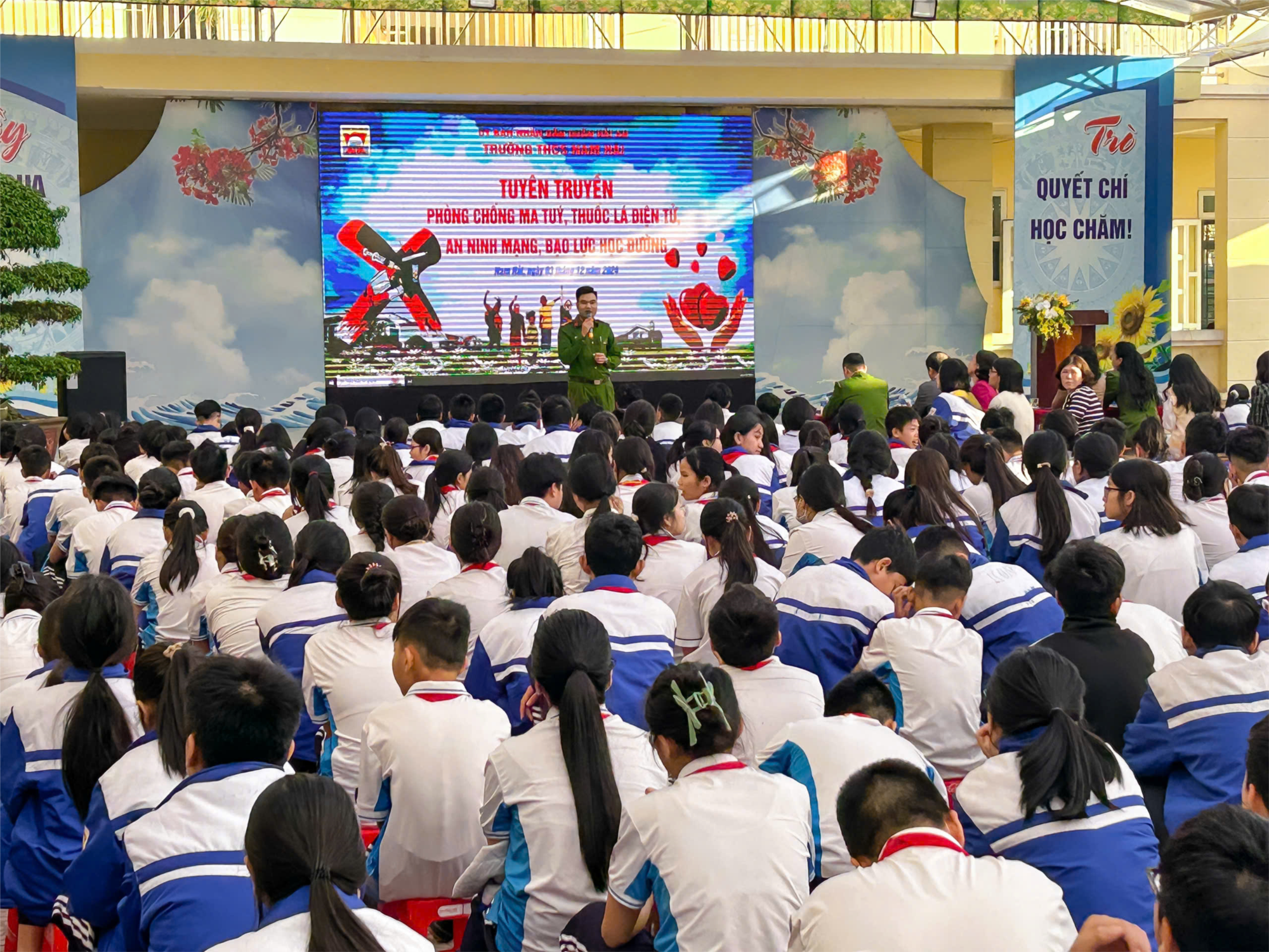 Ngày 03/12/2024, Trường THCS Nam Hải phối hợp cùng công an quận Hải An tổ chức tuyên truyền phòng chống ma túy, thuốc lá điện tử, an ninh mạng, bạo lực học đường cho các em học sinh nhà trường dự chương trình, nhà trường vinh dự được đón các đại biểu: