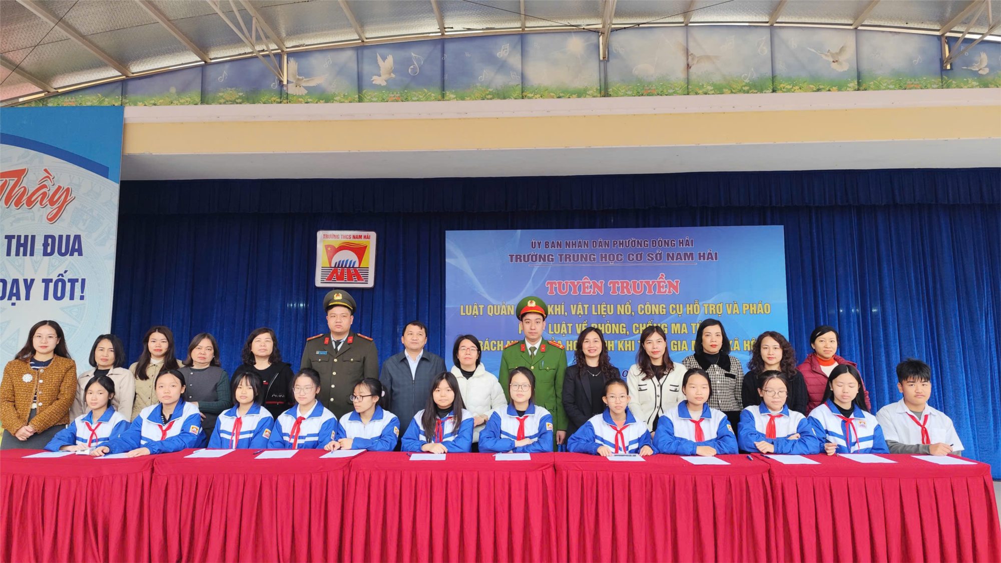 Sáng ngày 15/01/2026, Trường THCS Nam Hải đã tổ chức Lễ tuyên truyền với các nội dung thiết thực và ý nghĩa: Tuyên truyền Luật Quản lý vũ khí, vật liệu nổ, công cụ hỗ trợ và pháo, pháp luật về phòng, chống ma túy; trách nhiệm của học sinh khi tham gia mạng xã hội năm học 2025-2026
