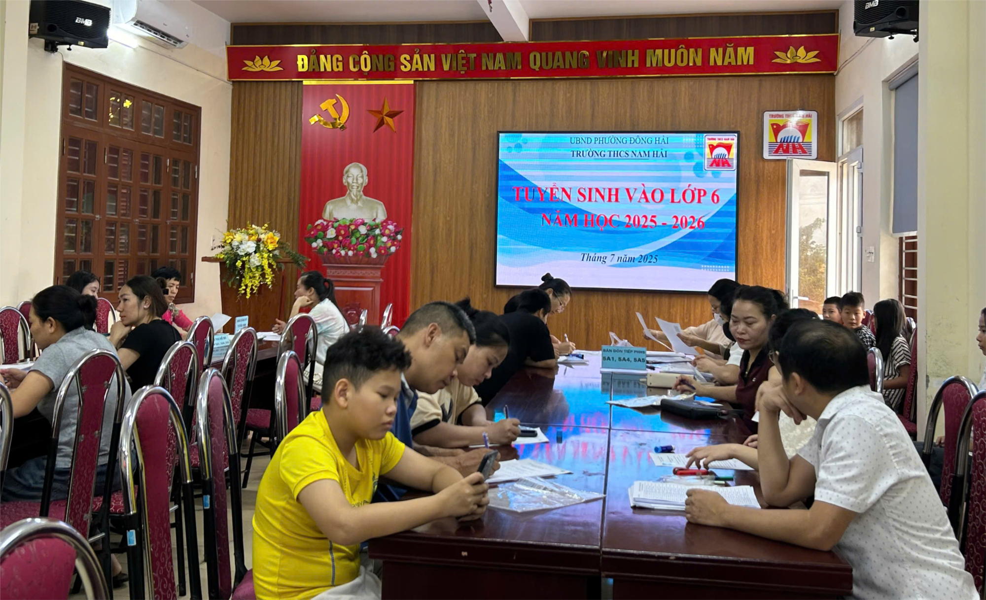Năm học 2025 - 2026, Trường THCS Nam Hải được giao chỉ tiêu tuyển sinh 151 học sinh lớp 6, nhà trường thực hiện song song 2 hình thức nộp hồ sơ tuyển sinh trực tuyến và trực tiếp. Nhà trường đã chủ động trong công tác truyền thông đến người dân về phương thức tuyển sinh trực tuyến qua trang fanpage Facebook, website của trường, cũng như tuyên truyền trên hệ thống loa phát thanh. Theo đó, nhà trường chuẩn bị chu đáo về nhân lực và trang, thiết bị thông minh để phấn đấu tổ chức tuyển sinh khối 6 bằng hình thức trực tuyến với tỷ lệ 100%.